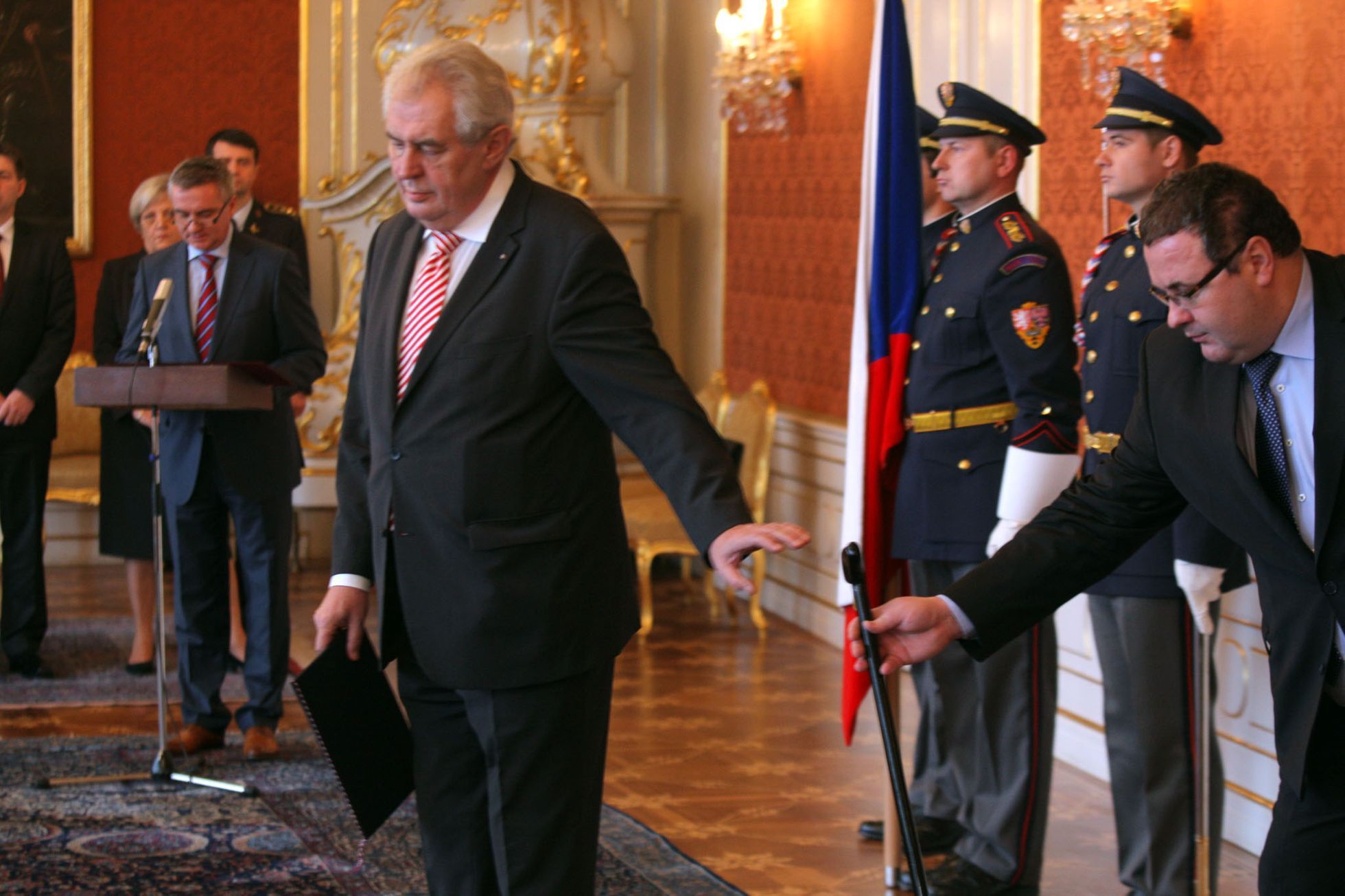 Ať vydržíte, popřál Zeman Ťokovi. Fotky z hradní ceremonie