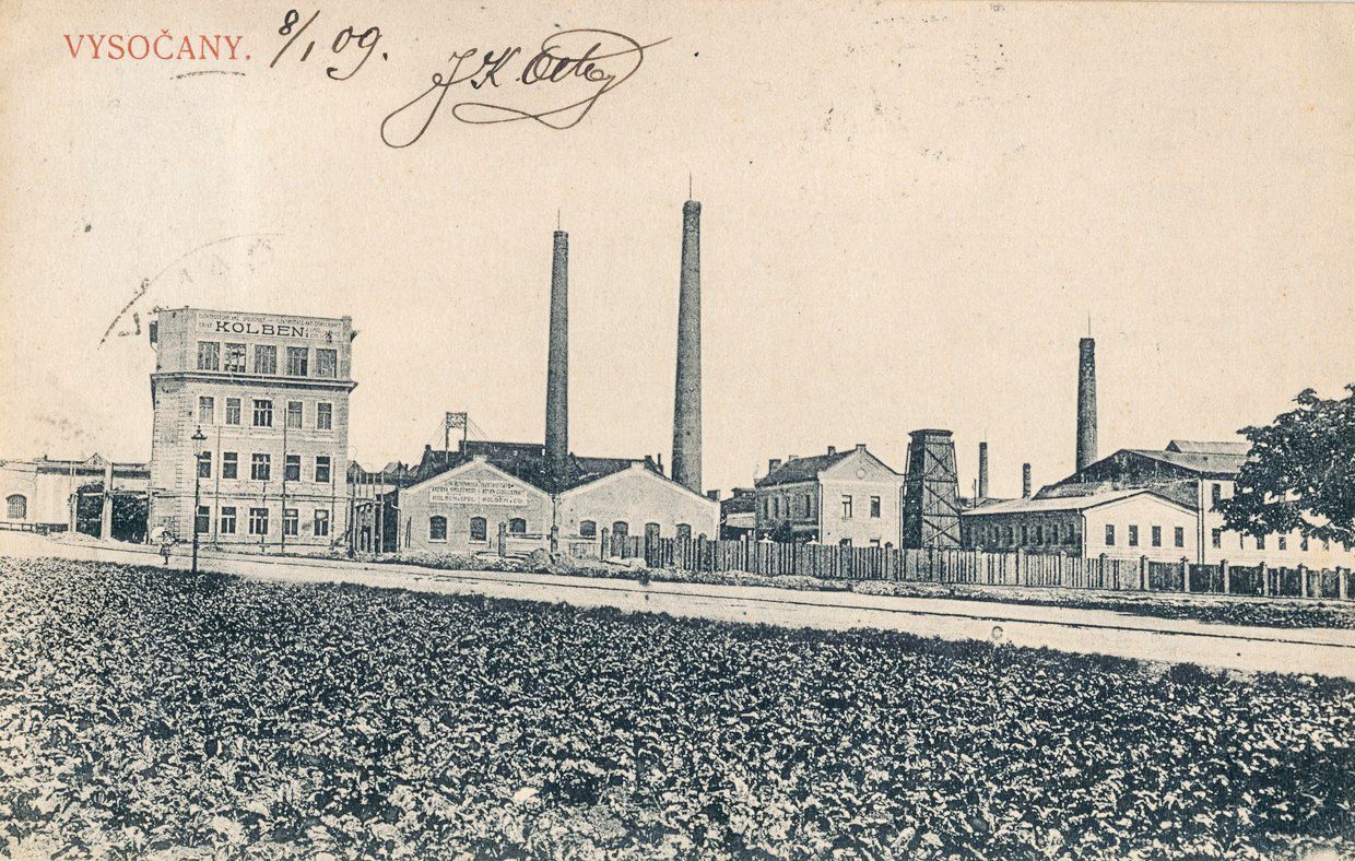 Kolbenova továrna ve Vysočanech; výřez z nedatované pohlednice