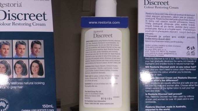 Pozor na výrobky s názvy Restoria Discreet Colour Restoring Cream 150 ml a 250 ml a Restoria Discreet Colour Restoring Lotion 150 ml.