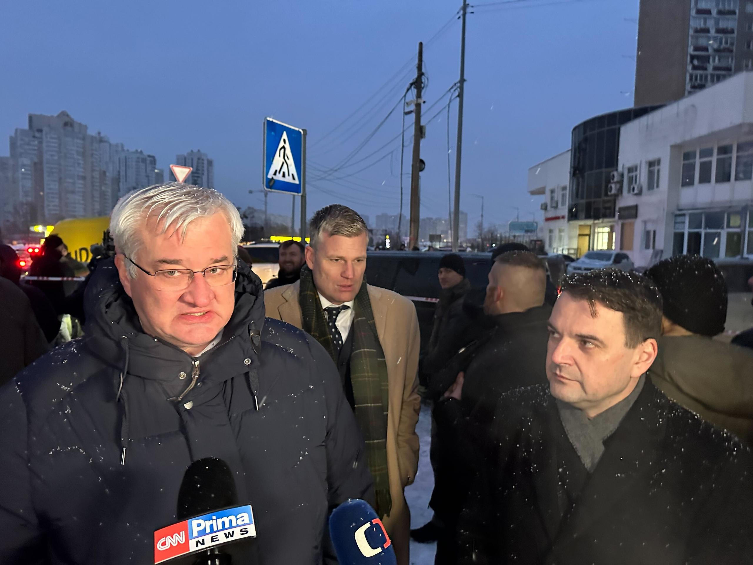 Kyjev v noci před příjezdem české delegace zasáhly ruské raketové a dronové útoky.