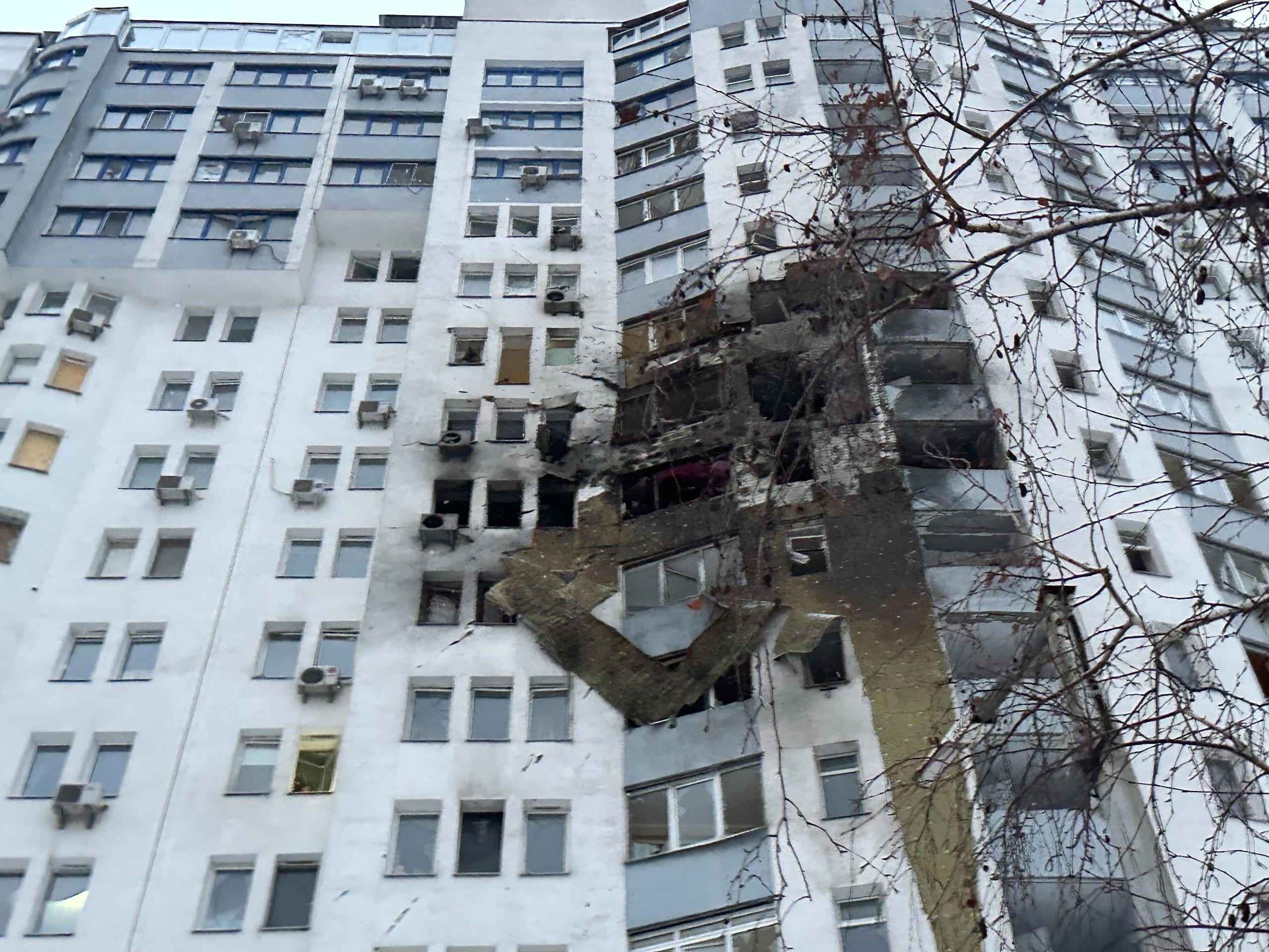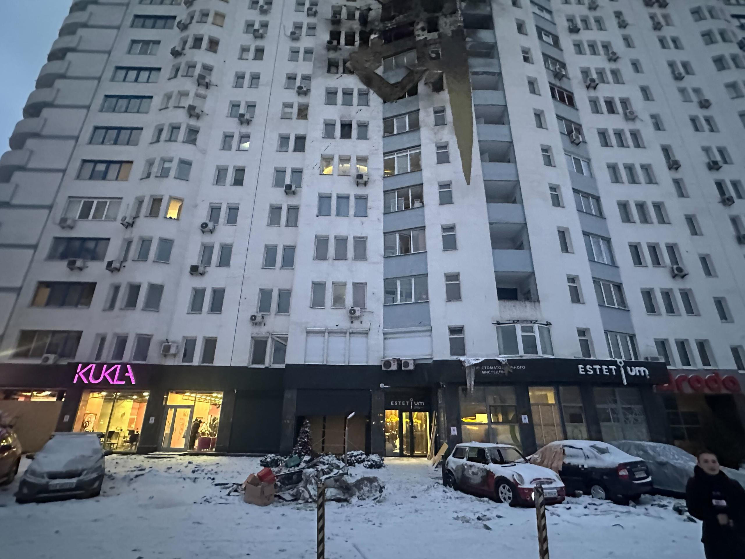 Politici navštívili i místo, které zasáhl ruský dron. Noční útok nepřežilo několik ukrajinských civilistů.