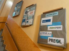 Tenhle moment si člověk uvědomí hned na prvních schodech uvnitř Střední odborné školy technické a zahradnické. Zatímco do nosu se line tradiční odér školní kuchyně dokončující oběd, úvodní nástěnku s partnery školy zdobí barevná loga Agrofertu a jeho dceřinek.