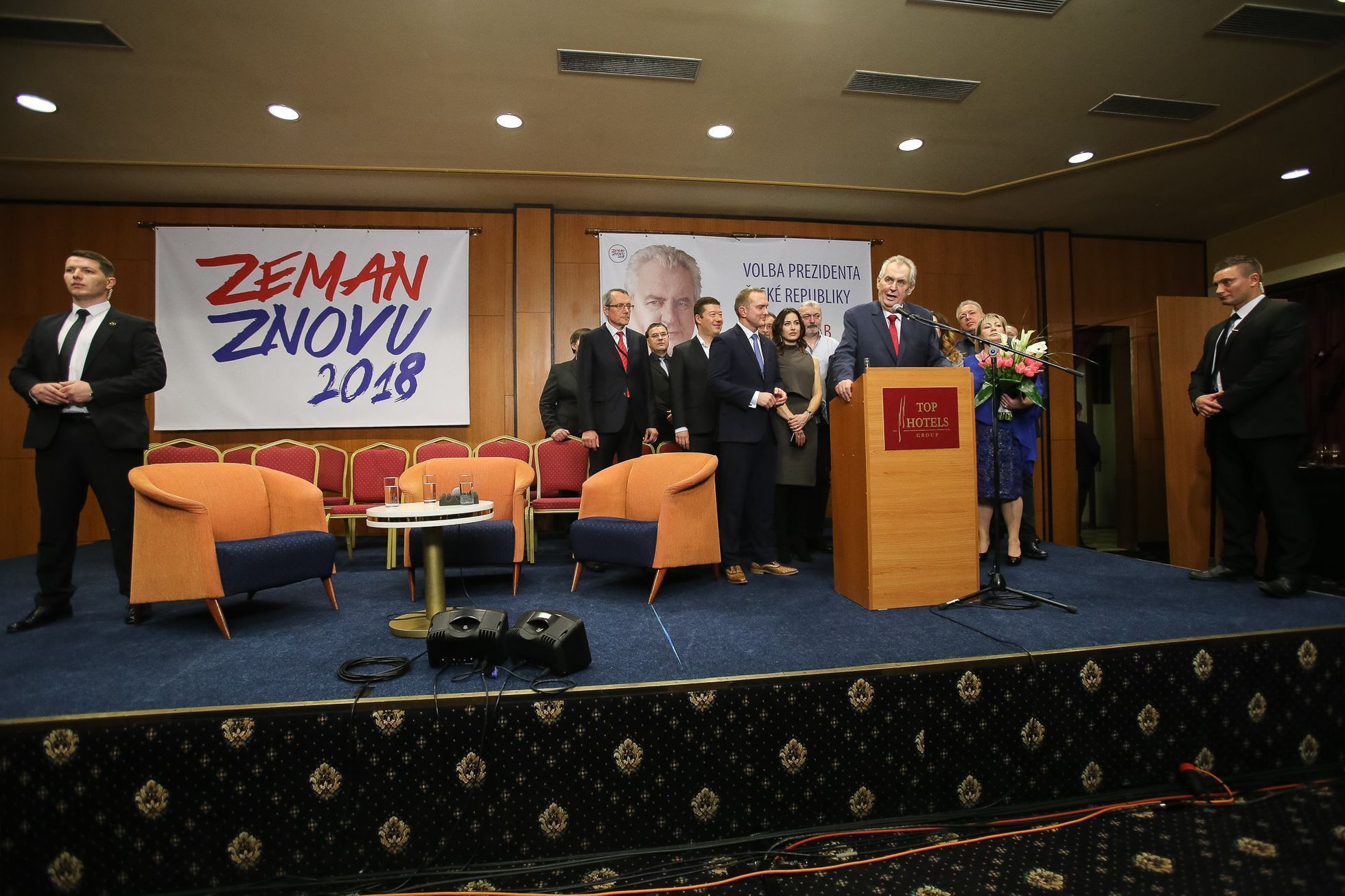 Fotoblog ze Zemanova štábu: Mynář, Nejedlý, Okamura i šéf ČEZu slavili. Příznivci napadli novinářky