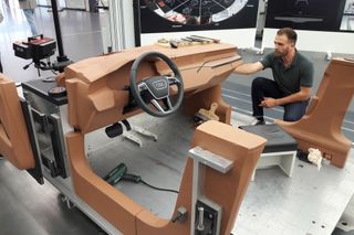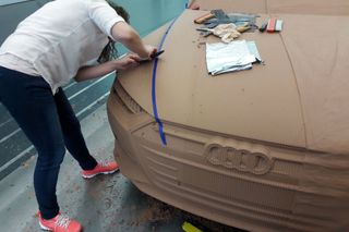 Než vznikne reálné auto, jednotlivé prvky jsou promítnuty na speciální model s vrstvou jílu. Ten umožňuje do karosérie vrýt všechny linie.