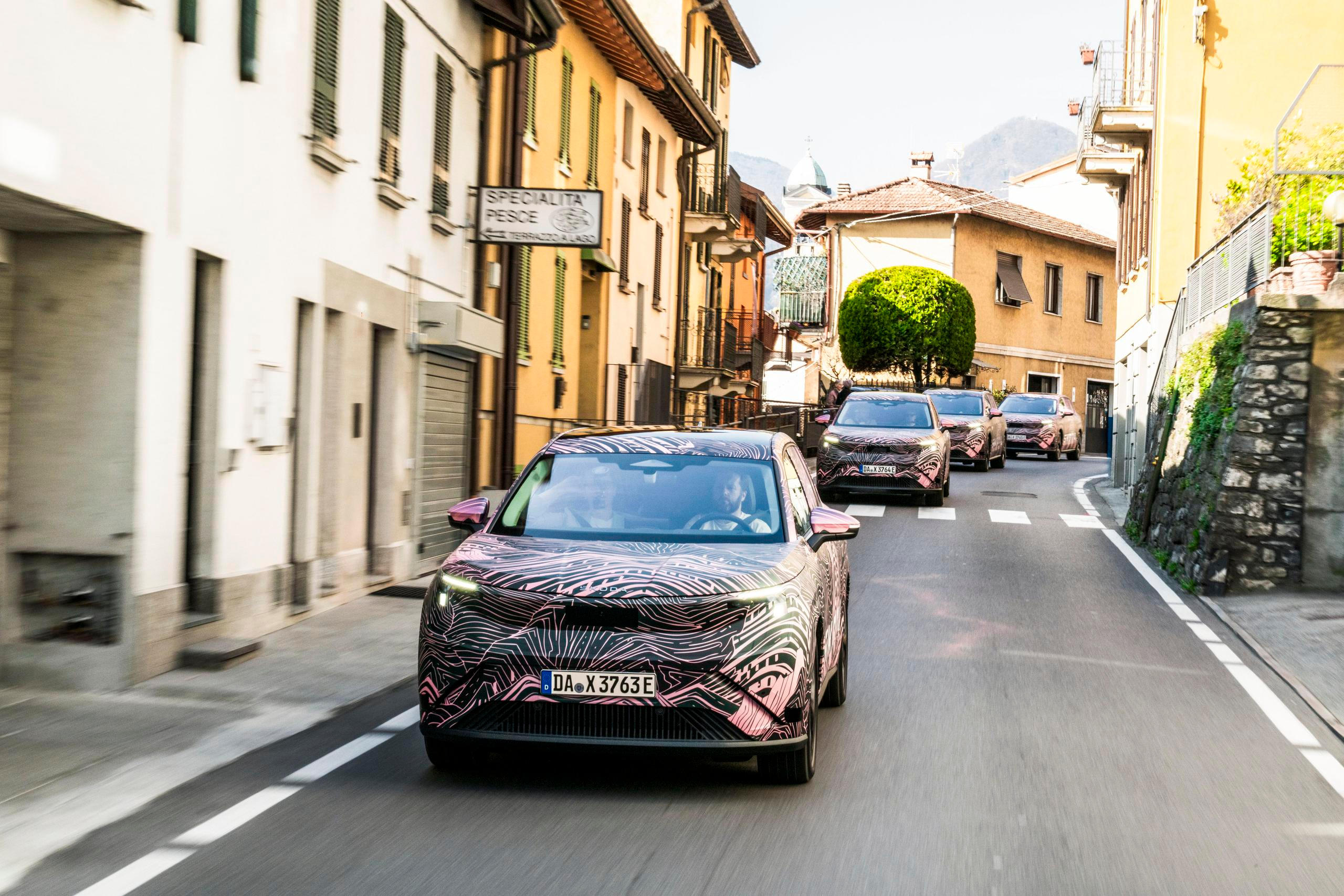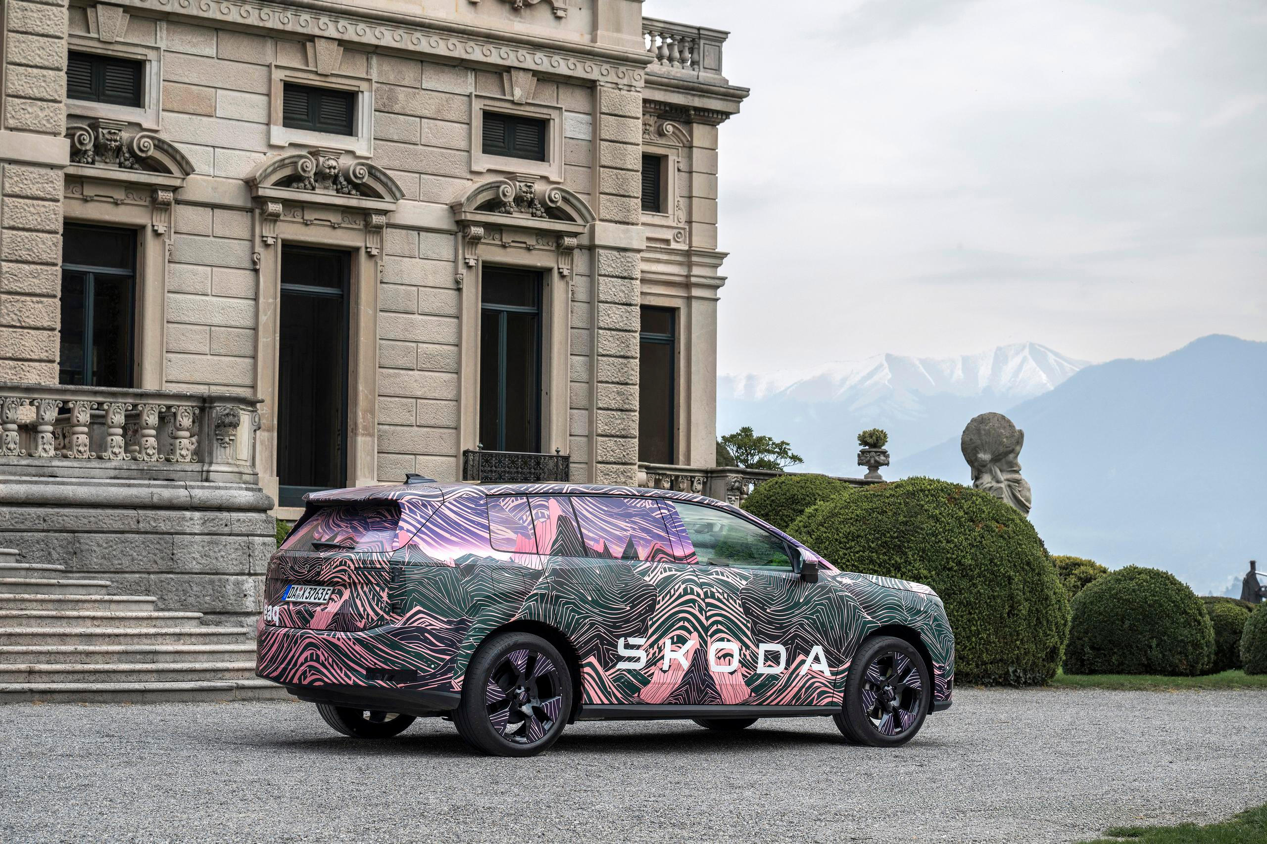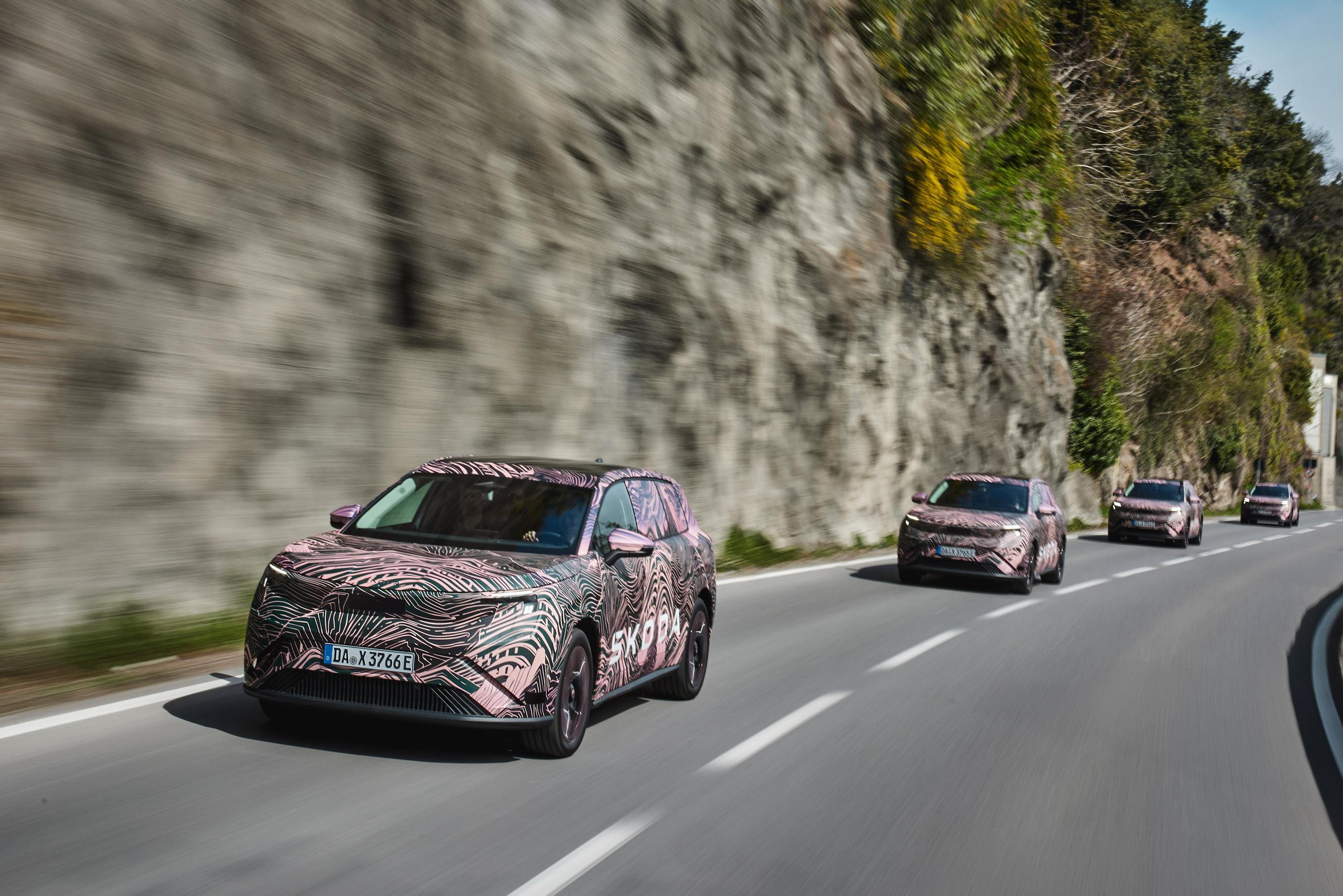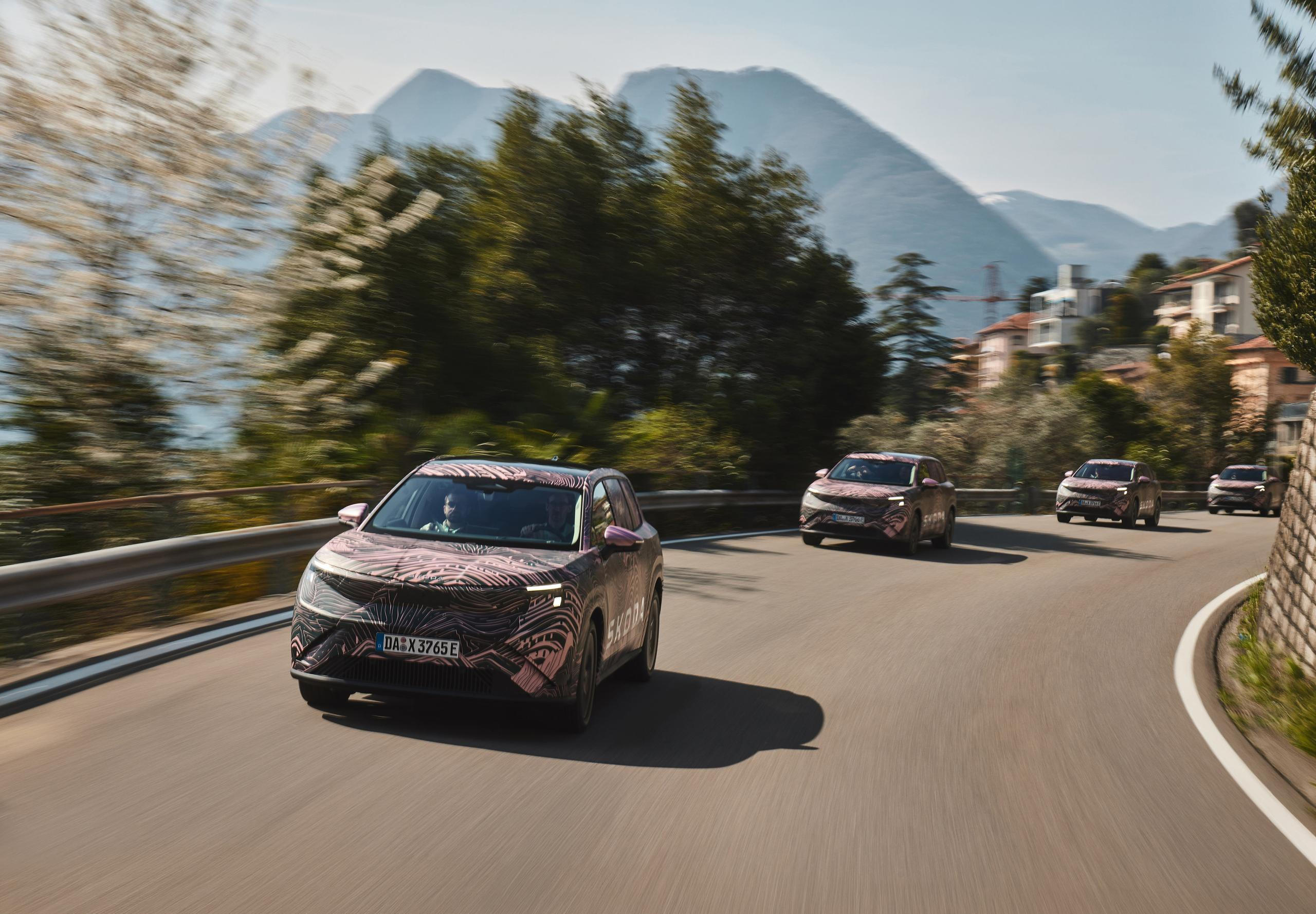Škoda novinářům poprvé ukázala zamaskovaný prototyp velkého elektrického SUV Peaq.