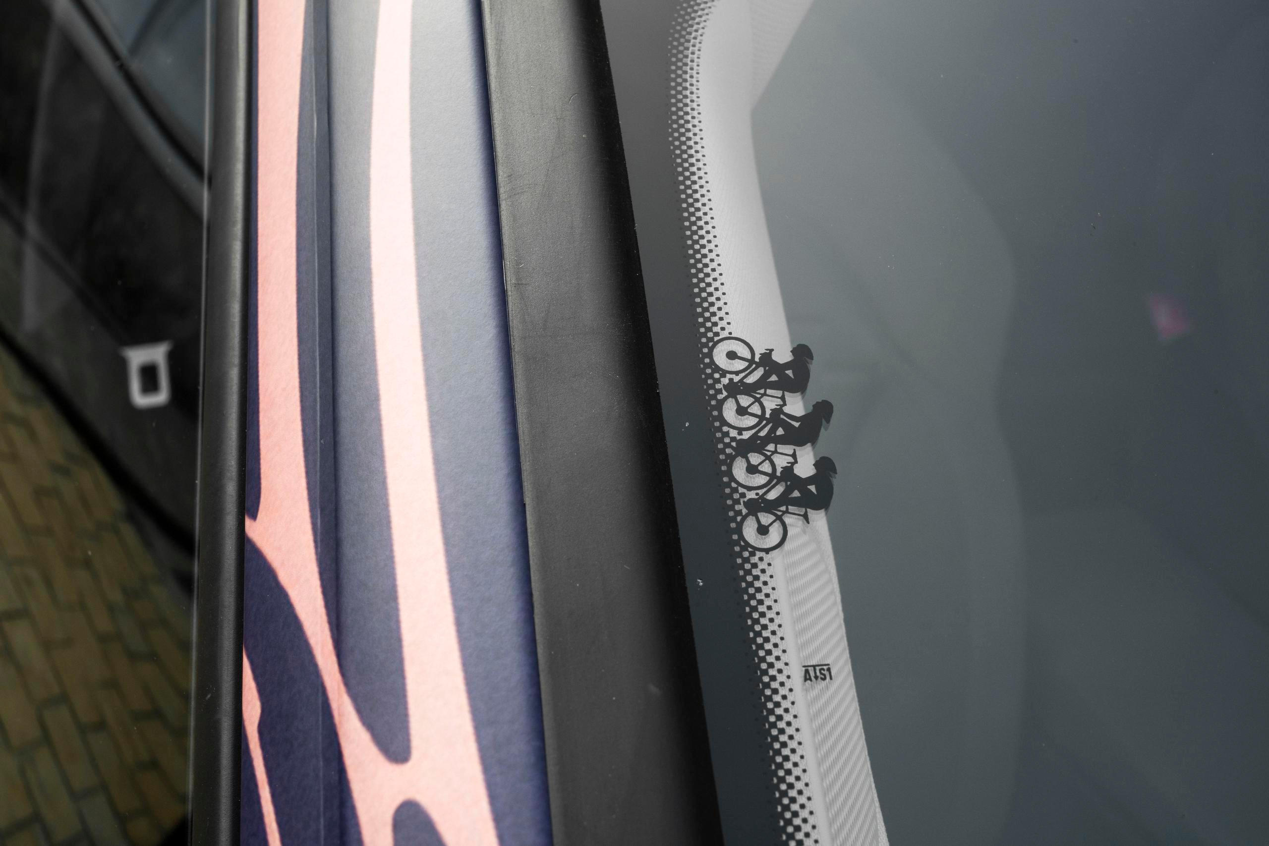 Symbol třech cyklistů odkazuje na angažmá v závodu Tour de France i minulost značky.