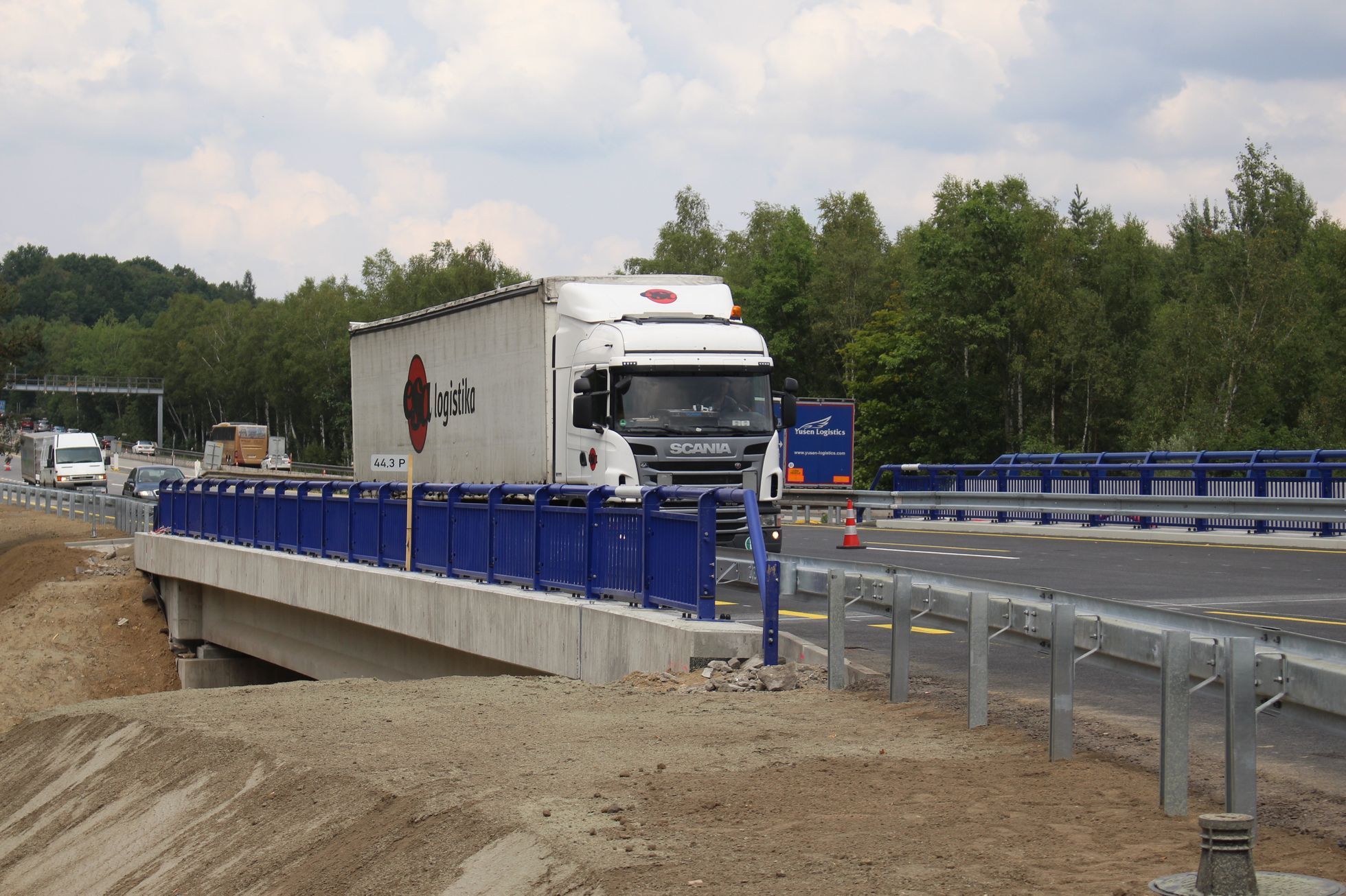 První jízda po opravené D1. Jsou tu zálivy i pískové bariéry