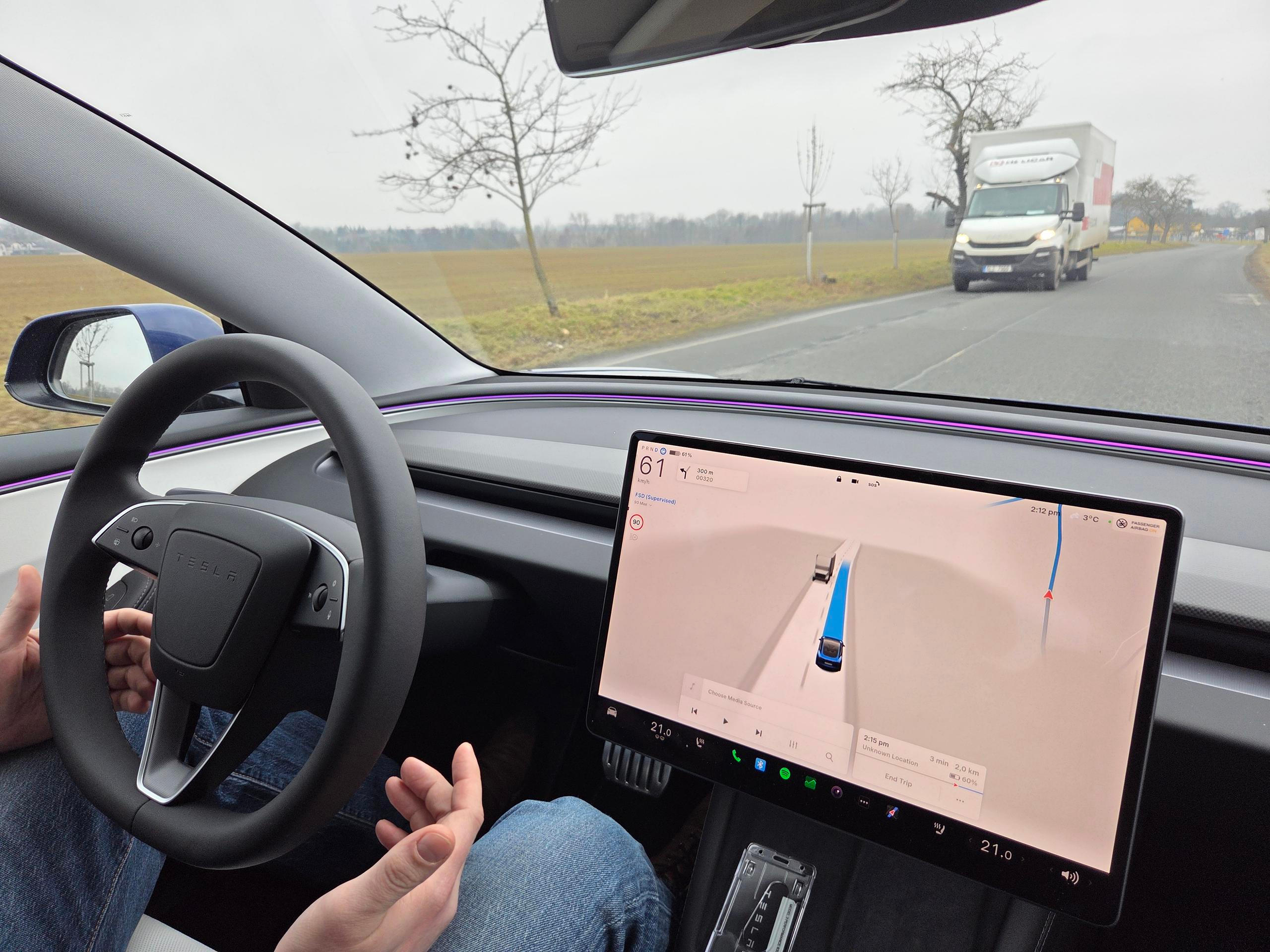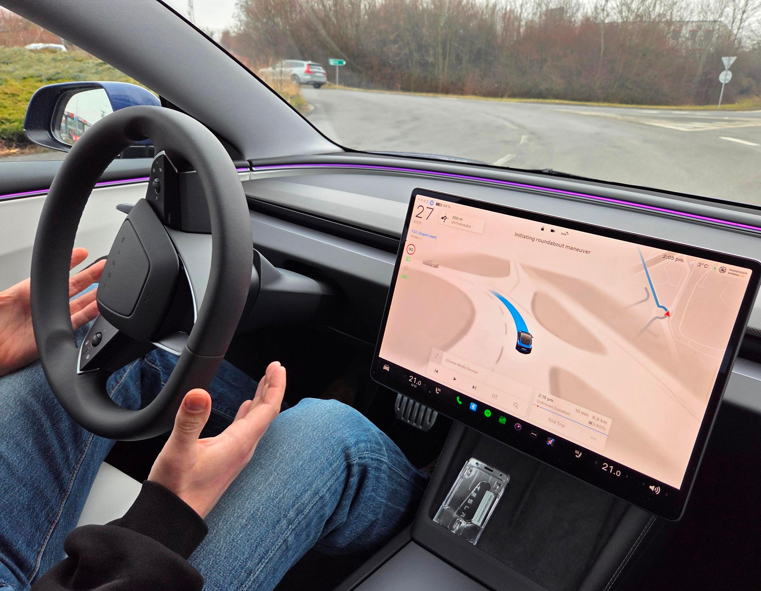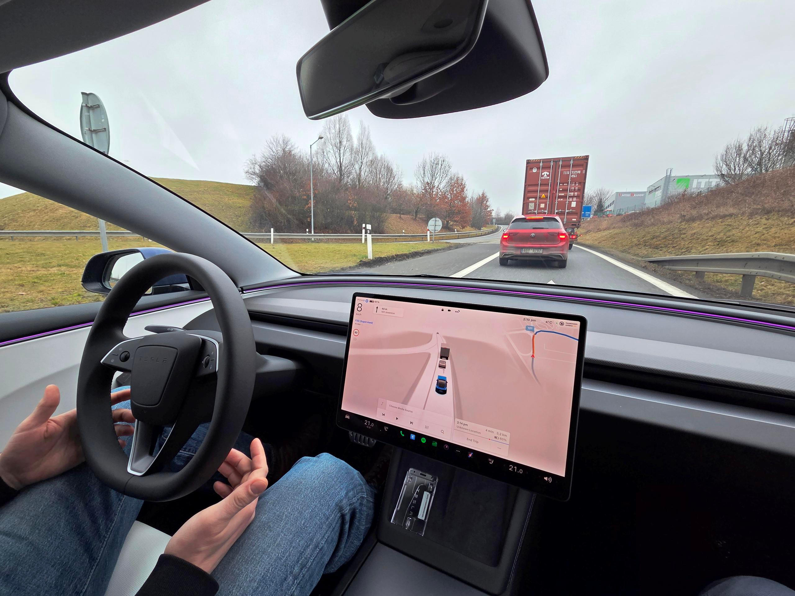 Nicméně je to auto vybavené technologií FSD Supervised, tedy samočinným řízením pod dozorem.