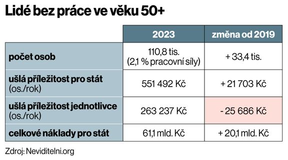 Její nárůst souvisí s tím, že i počet padesátníků a starších, kterým se nedaří práci najít, v posledních letech vzrostl. V roce 2019, kdy projekt Neviditelní začal, bylo dlouhodobě bez práce 77 tisíc lidí přes 50 let, kteří měli zájem pracovat. Dnes už jich je přes 110 tisíc, což představuje 2,1 procenta pracovní síly.