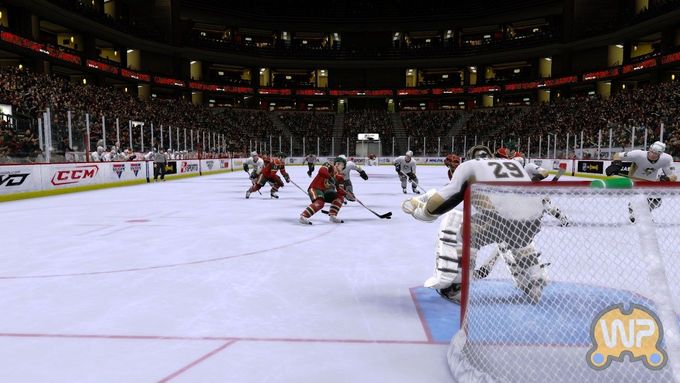 Nejdříve si ale něco povězme o ovládání. To se nese doslova v krkolomném stylu. Sám předvádějící vývojář měl problém uhrát jednu třetinu, a tak jsem si řekl, že tohle nebude zrovna tou nejsilnější devizou nového NHL od 2k Sports. Pohyb hráče provádíte pomocí nunchuku a směr přihrávek koordinujete pomocí wiimote. Díky docela rychlé hře byl problém s přesnými přihrávkami, protože nebylo možné wiimotem stíhat pohybující se hráče. Vývojář se sice snažil, seč mohl, ale i tak nedokázal dosáhnout plynulé hry. Pro střelbu je potřeba máchnout wiimotem za sebe dozadu, abyste pak mávnutím dopředu vyslali střelu.