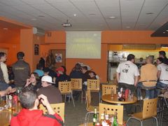 Samotný sraz začínal oficiálně v sobotu ve dvě hodiny odpoledne. Pro akci byla zablokovaná celá restaurace, v jejíž vysunuté části byl i hráčský kutloch. Tam se odehrávala kamarádská klání ve hrách Project Gotham Racing 3, Top Spin 2, Gears of War, Table Tenis, NHL 2K7, FIFA 07 atd. Opravdová pařanská atmosféra byla cítit kolem čtvrté hodiny odpoledne, kdy začal turnaj v Top Spin 2 promítaný na plátno. Šestnáct dvojic se zde utkalo ve čtyřhrách a bojovalo se o každý míček. Prvních osm hráčů si to potom rozdalo v singlech o konečné pořadí, které určovalo vítěze výher (bezdrátové ovladače, bezdrátové headsety, Live kamerky, trička). Toho jsme účastnili i my a s Michalem Jonášem (jeho pohled na věc najdete zde) jsme utvořili novinářskou dvojku. Bohužel ani dlouhé roky v branži a odehrané tisíce hodin nás nezachránily od porážky.