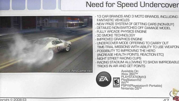 Jen nedávno jsme psali první novinku o novém dilu populárních arkádových závodů Need for Speed a divili se, proč toho vývojáři do světa nevypustí více, když už se podzimní termín vydání rychle blíží. Jako na zavolanou tak přichází informační E3 leták od nejmenovaného zdroje, ze kterého se mohou fanoušci série labužnicky protahovat a všichni ostatní zvědavě šoupat nosem. Zatím se neví, zda se nejedná o podvrh a stále se čeká na oficiální oznámení od pánů z EA, spekulovat o tom však můžeme do aleluja. Veškeré podstatné info se vám představuje níže: