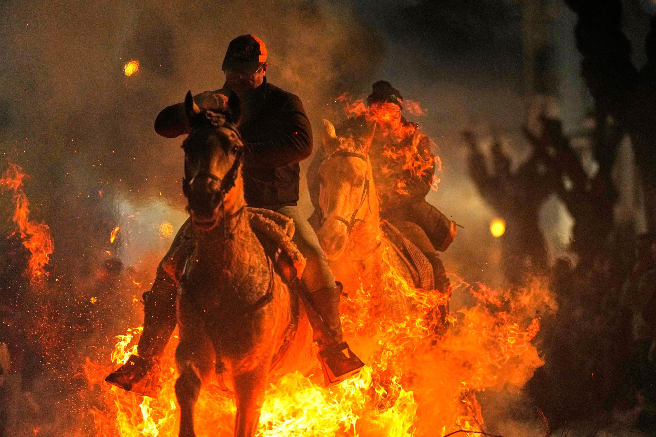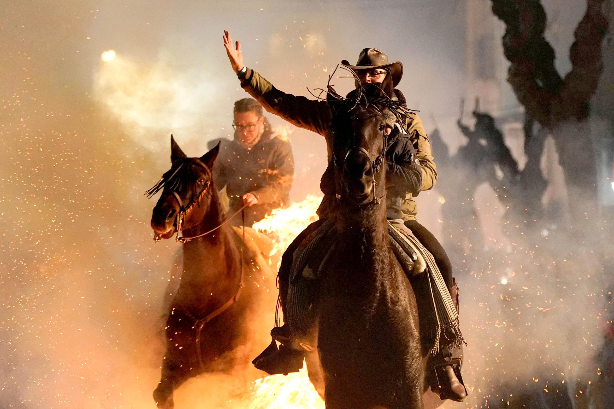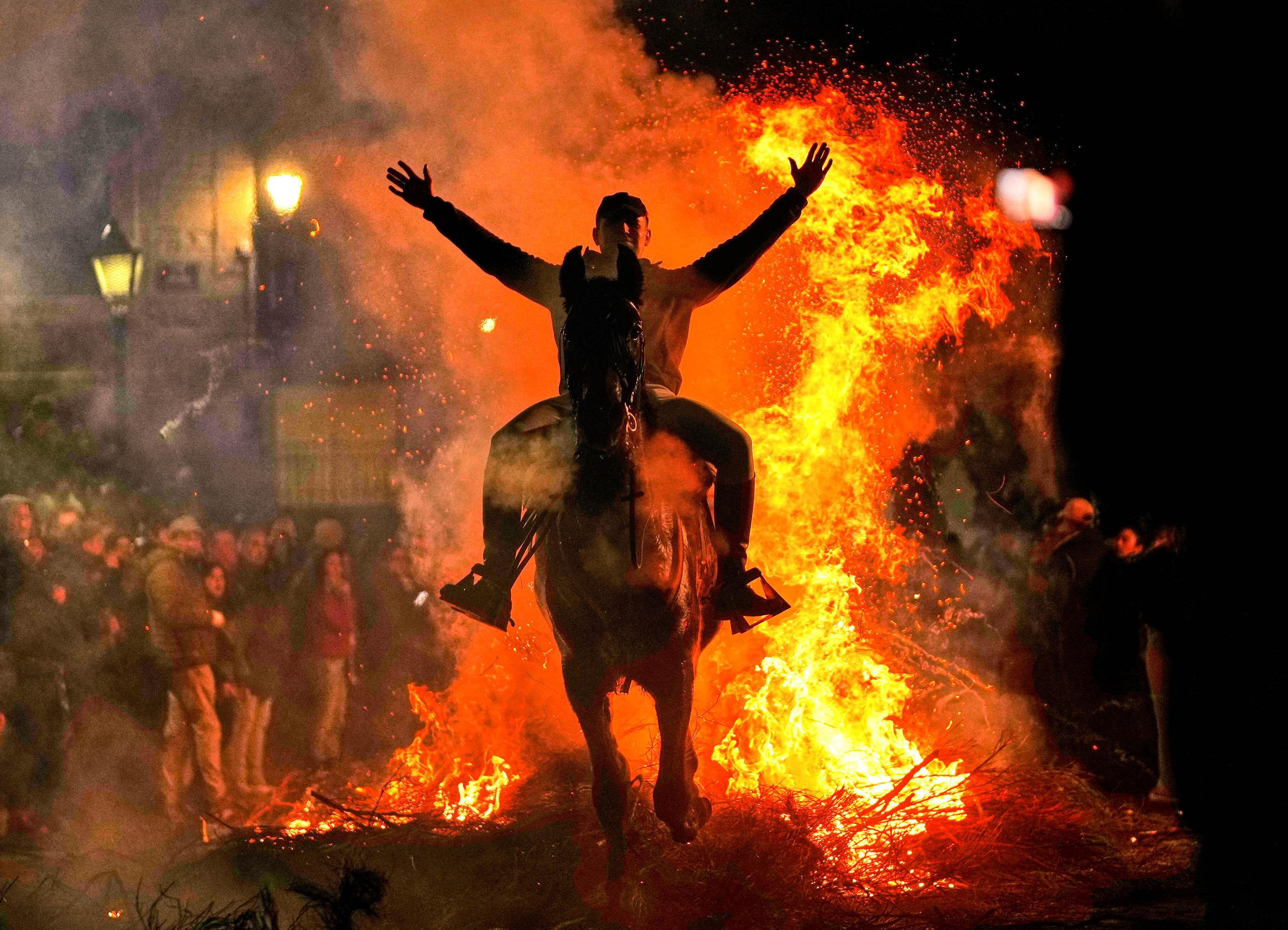 Stovky Španělů o víkendu sledovaly, jak koně přeskakují mohutné ohně. Tato tradice se koná každý leden na počest svatého Antonína, patrona hospodářských zvířat.