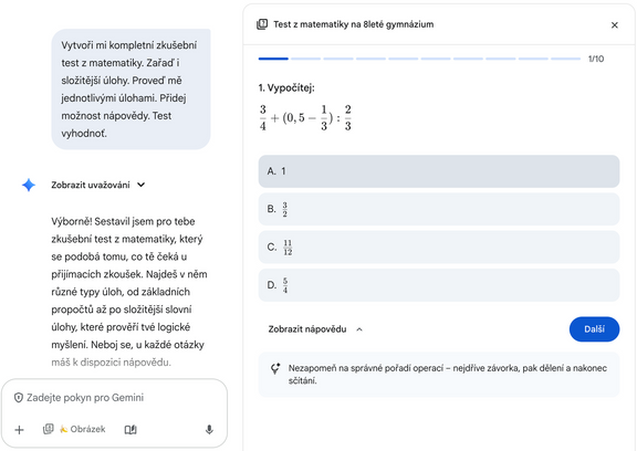 "Cílem je učit se chytřeji, nikoli tvrději. AI nejdřív představí koncept, vy se ptáte na to, čemu nerozumíte, a na konci vás AI přezkouší, zdali jste všechno opravdu pochopili," přibližuje novinku Jennifer Shen, ředitelka produktového managementu pro Gemini.