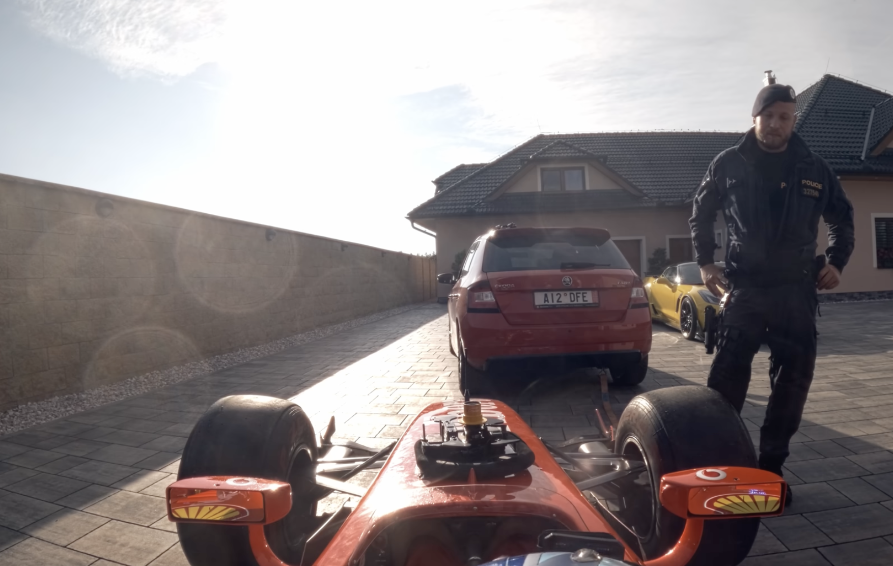 Záběry ze zadržení jezdce v červené formuli se objevily na YouTube kanálu TrackZone.