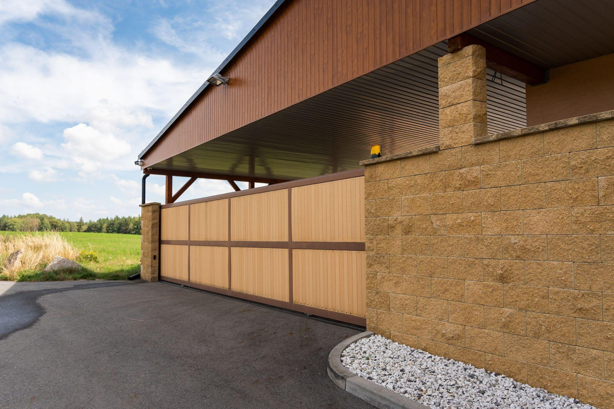 Velkou vilu s několika vraty hlídá pár bezpečnostních kamer. Domu chybí číslo popisné.