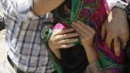 Bodyguardi doprovázejí jednu z propuštěných rukojmí ve městě Ghazní.