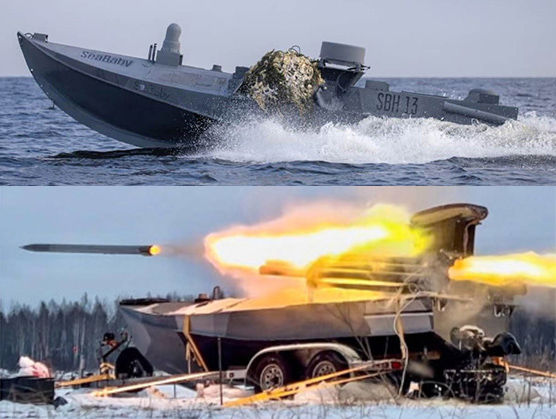 Lukáš Visingr:Na některých typech se objevují neřízené rakety, které se vypouštějí v salvách. Tyto zbraně potenciálně slouží k několika účelům. Kromě primárního útoku na cíl by mohly být použity k obraně proti hrozbám z pevniny a během sebevražedného útoku mohou být rakety odpáleny k odlákání pozornosti obránců. Tohle je mimochodem něco, co Ukrajinci nevymysleli, tohle měli už Japonci na svých sebevražedných člunech během druhé světové války a je možné, že tohle Ukrajince inspirovalo.