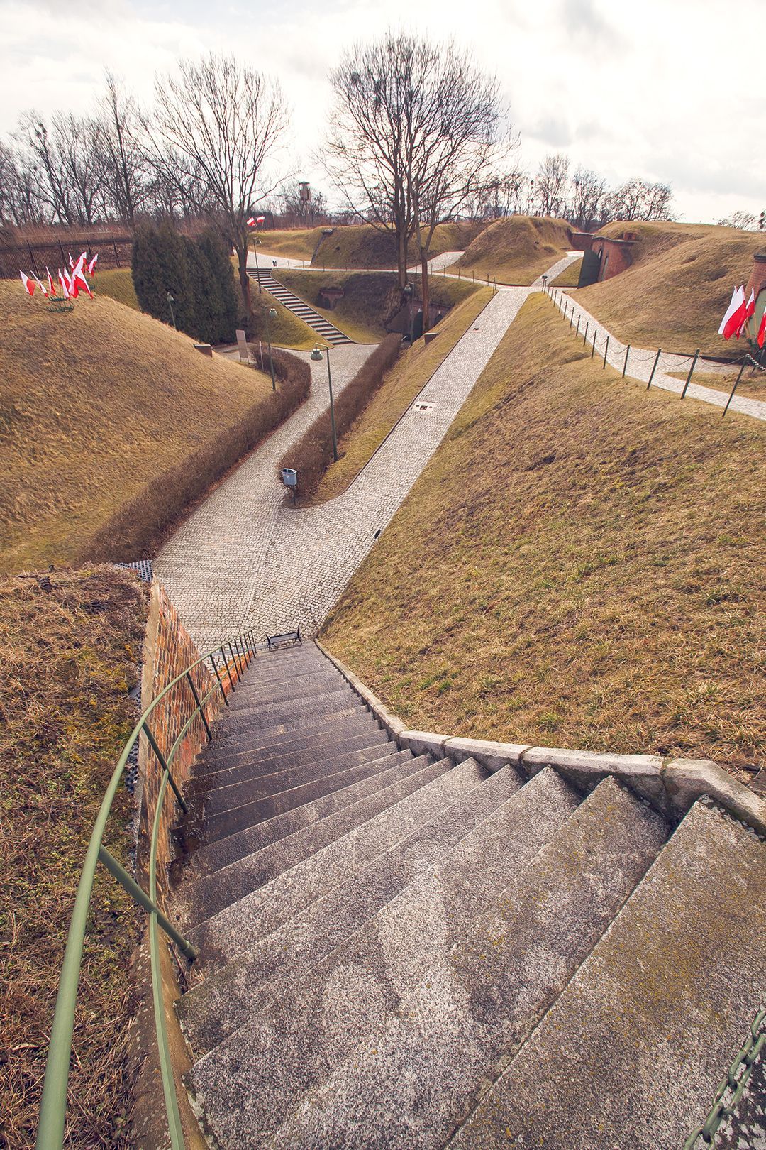 Záběry z vnitřní členité části pevnosti č. 7 v polské Poznani.
