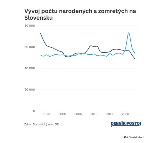 Na Slovensku se v roce 2024 narodilo něco málo přes 46 tisíc dětí. Ještě v roce 2021 jich bylo o deset tisíc víc. V roce 1993 téměř o 30 tisíc víc a koncem 70. let se rodilo až 100 tisíc dětí ročně.