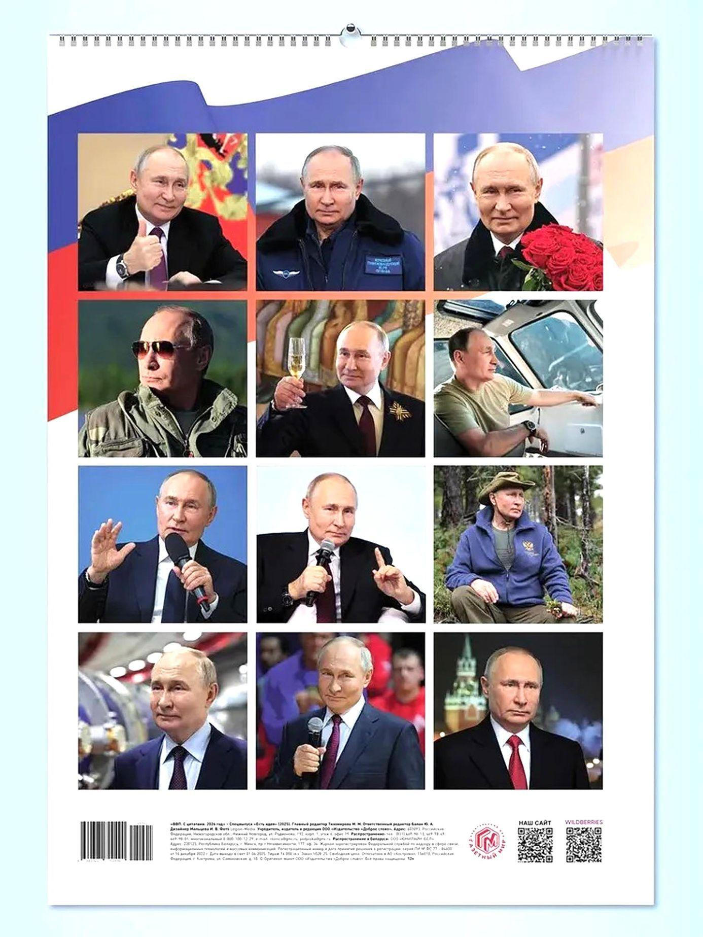 Na ruských internetových tržištích je kalendářů s ruským prezidentem vice. Je to dobrý byznys a Putinova sbírka fotografií umožňuje nekonečné množství hrdinských variací.