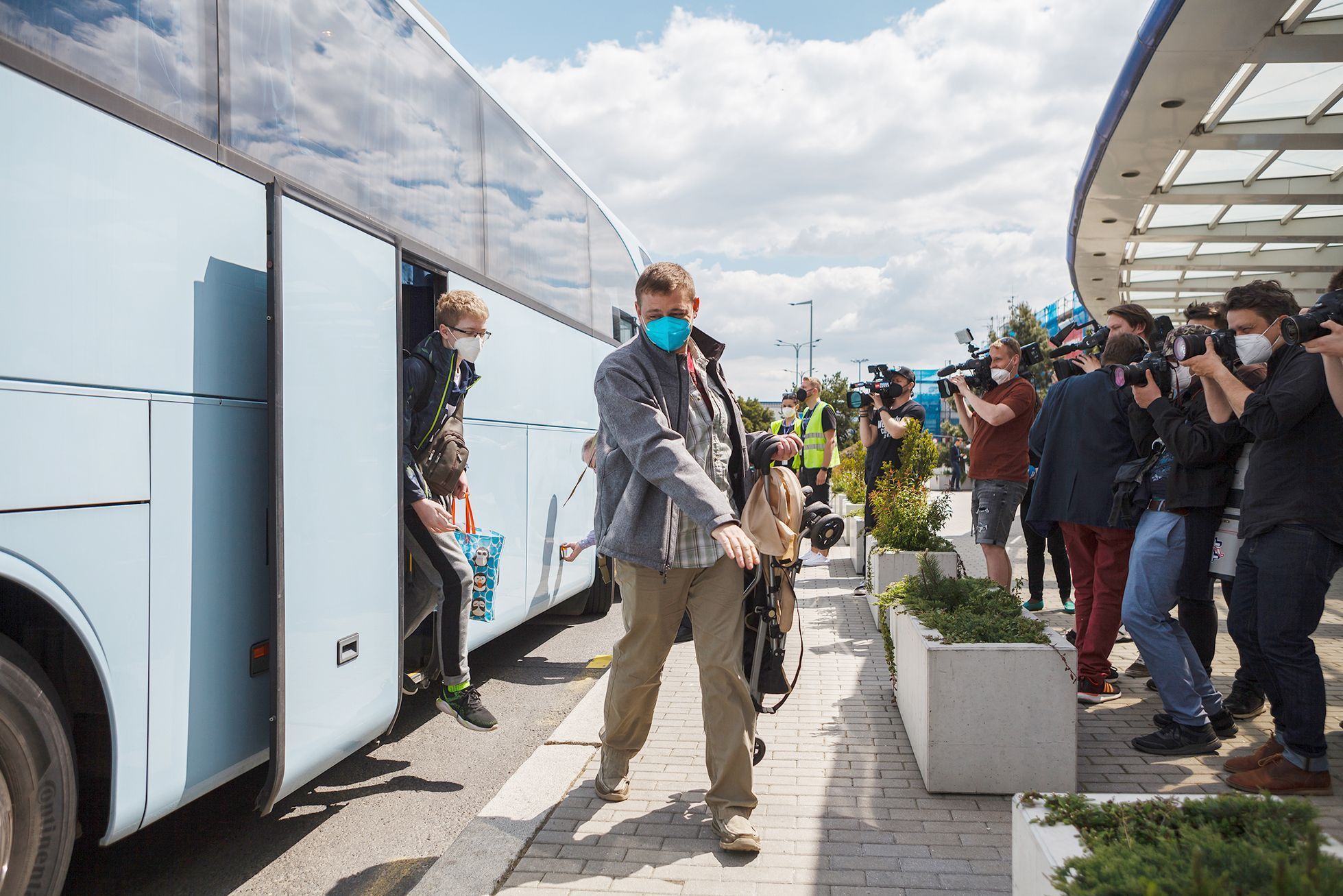 Obrazem: Vozíky plné kufrů, přepravky se psy. Zbylí vyhoštění Rusové opustili Česko