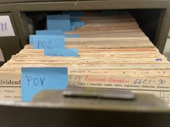 "Forma těch evidenčních štítků byla ve většině případů stejná," otevírá Adam Zítek, odborný archivář, jeden ze šuplíků. "Obsahuje hodnocení z nějaké prověrky a potvrzuje, že ten člověk byl ve straně, ale už z toho nevyčtete jeho motivy," popisuje dál.