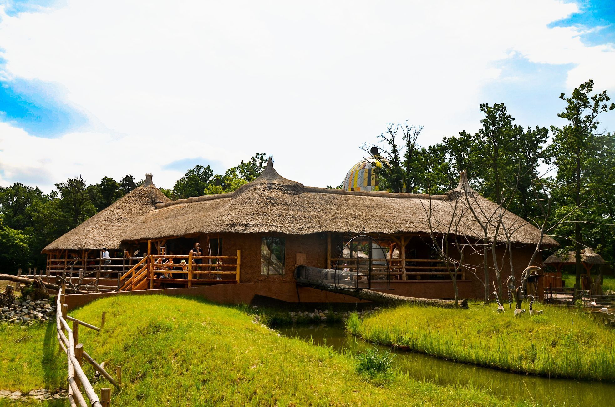Záběr z Africké vesnice v areálu brněnské Zoo.