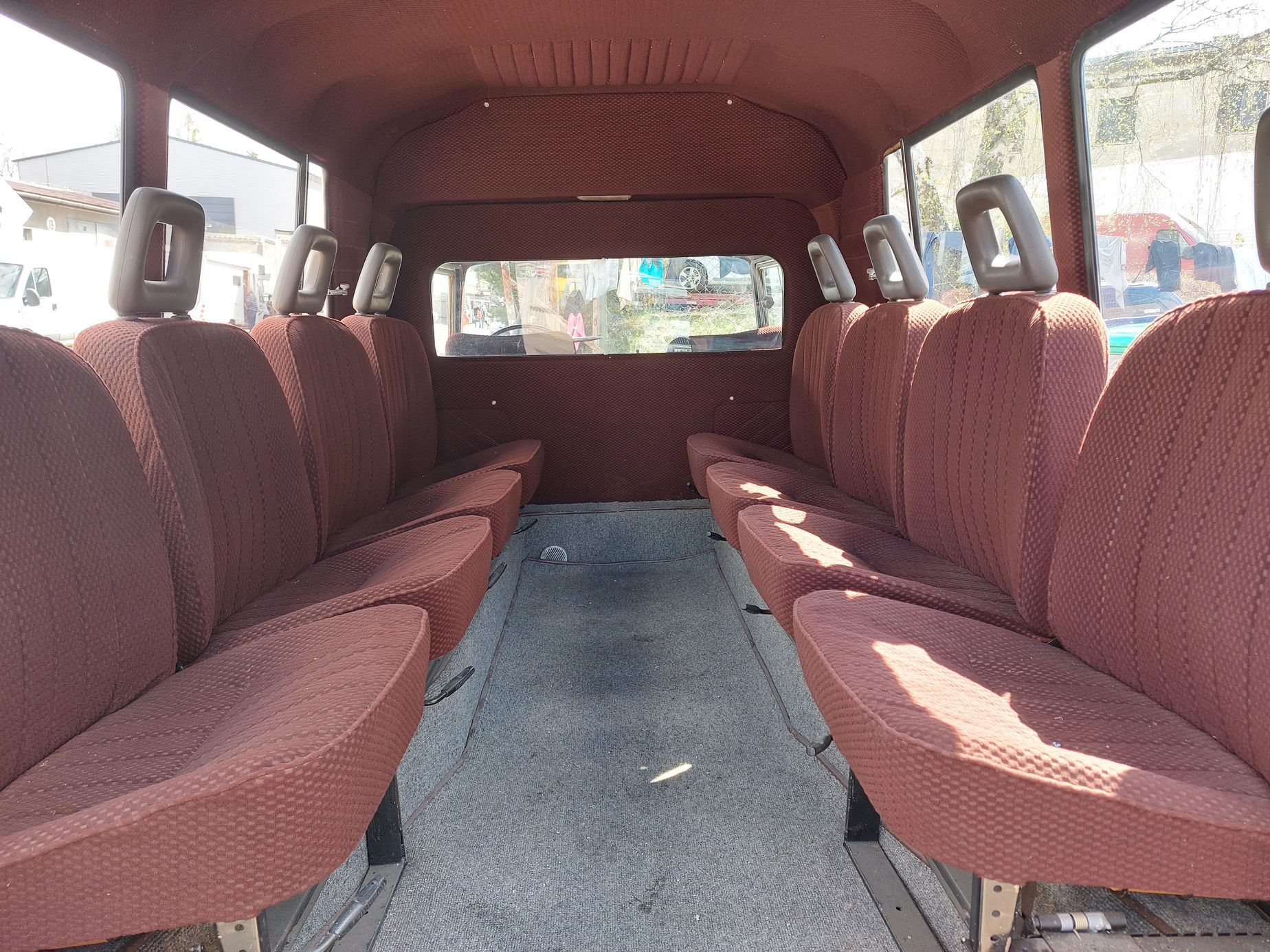 Sezení je řešeno sedačkami umístěnými po stranách laminátové nástavby.