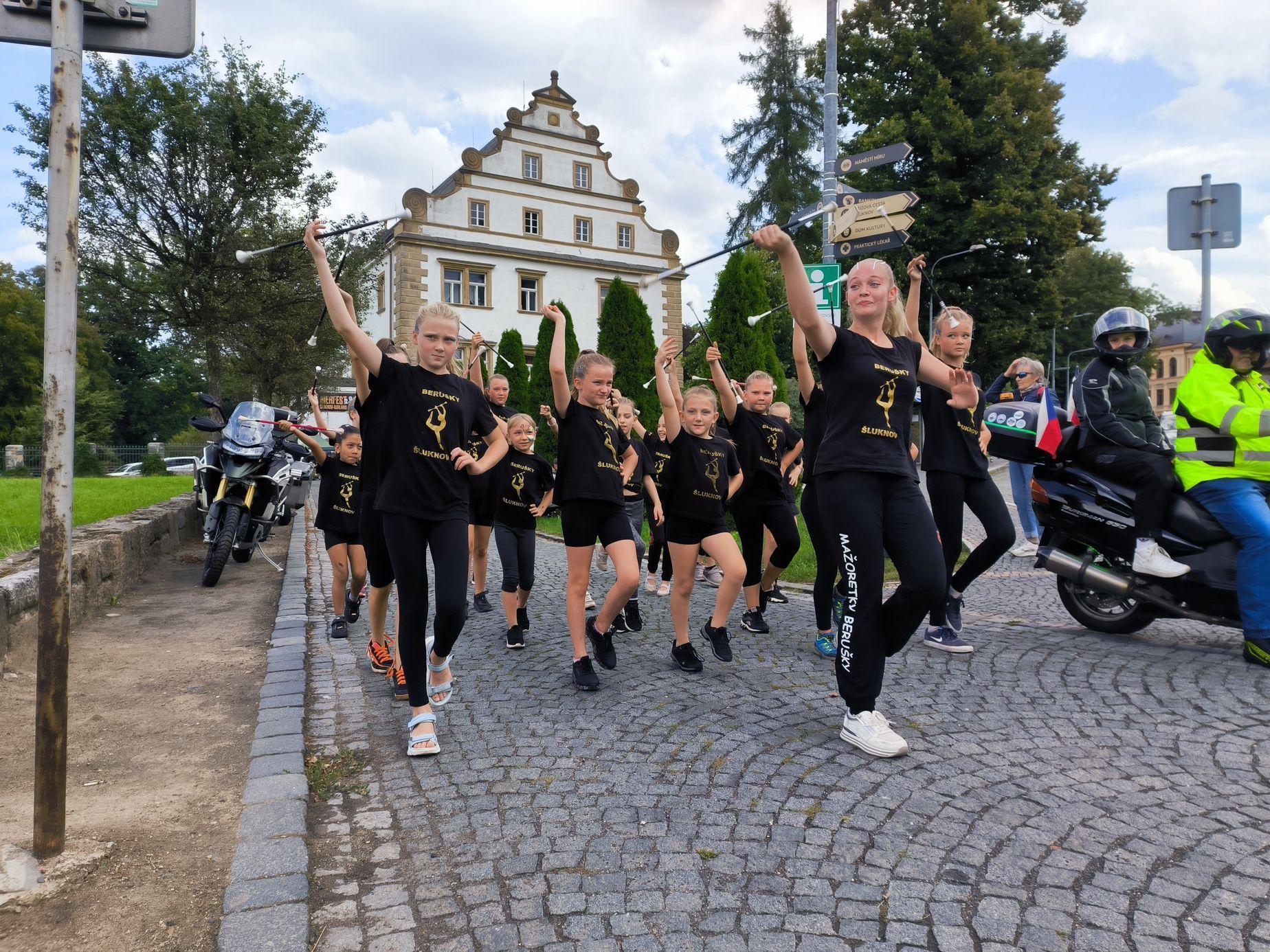 Na další cestu od šluknovského zámku vyprovodily motocykly místní mažoretky.