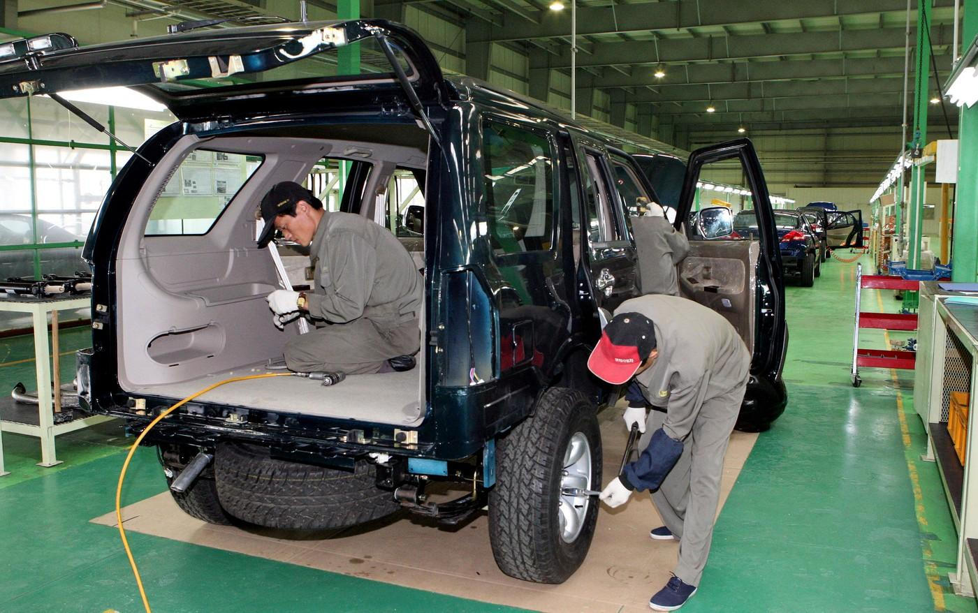 Montáž jednoho z čínských SUV v roce 2007. Mimochodem právě některé SUV a pick-upy vyráběné v licenci v KLDR se následně vyvážely do Vietnamu, kde je prodávala firma Mekong Auto.