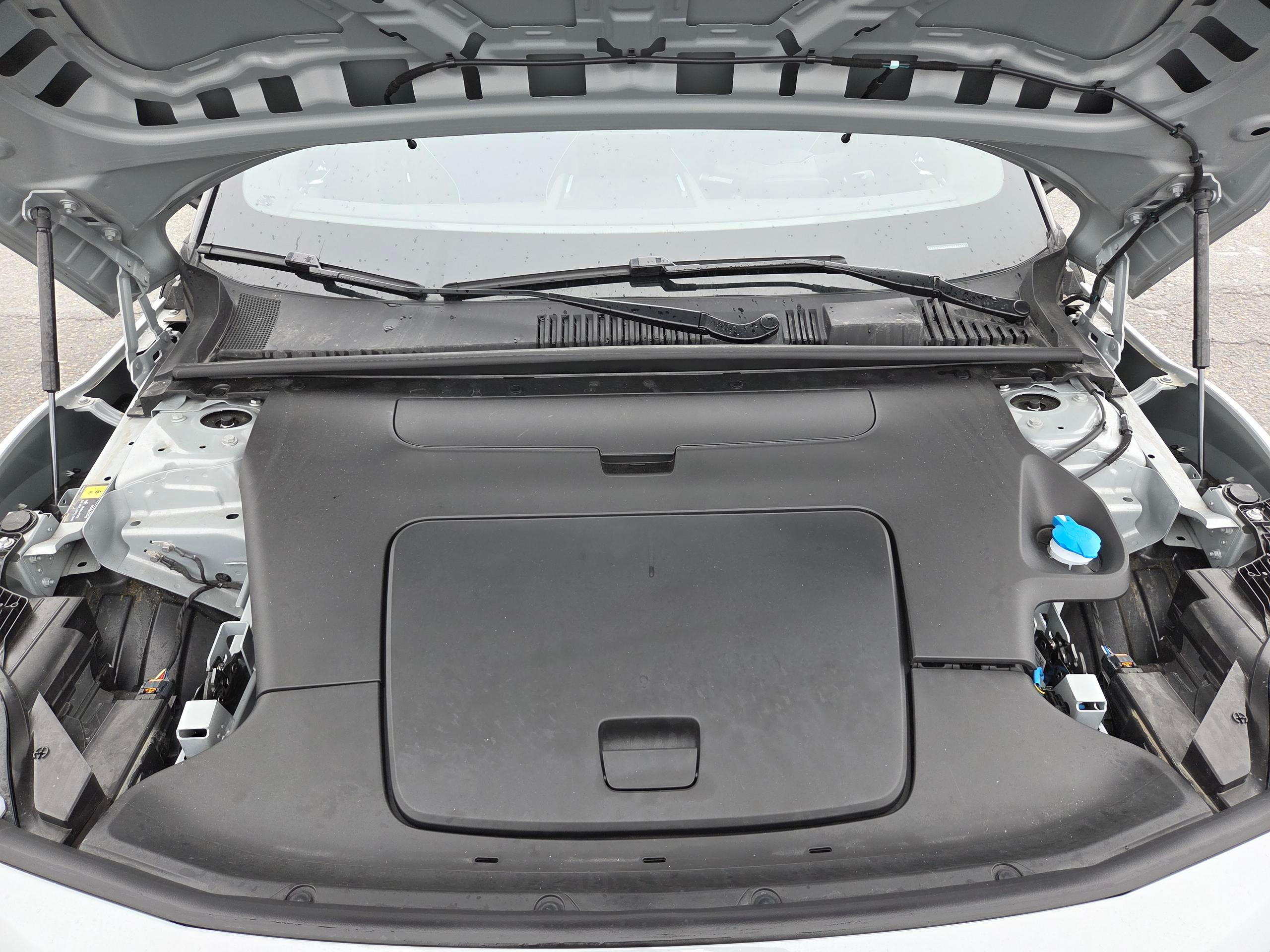 Prostor pod přední kapotou je pečlivě zakrytý plastem.