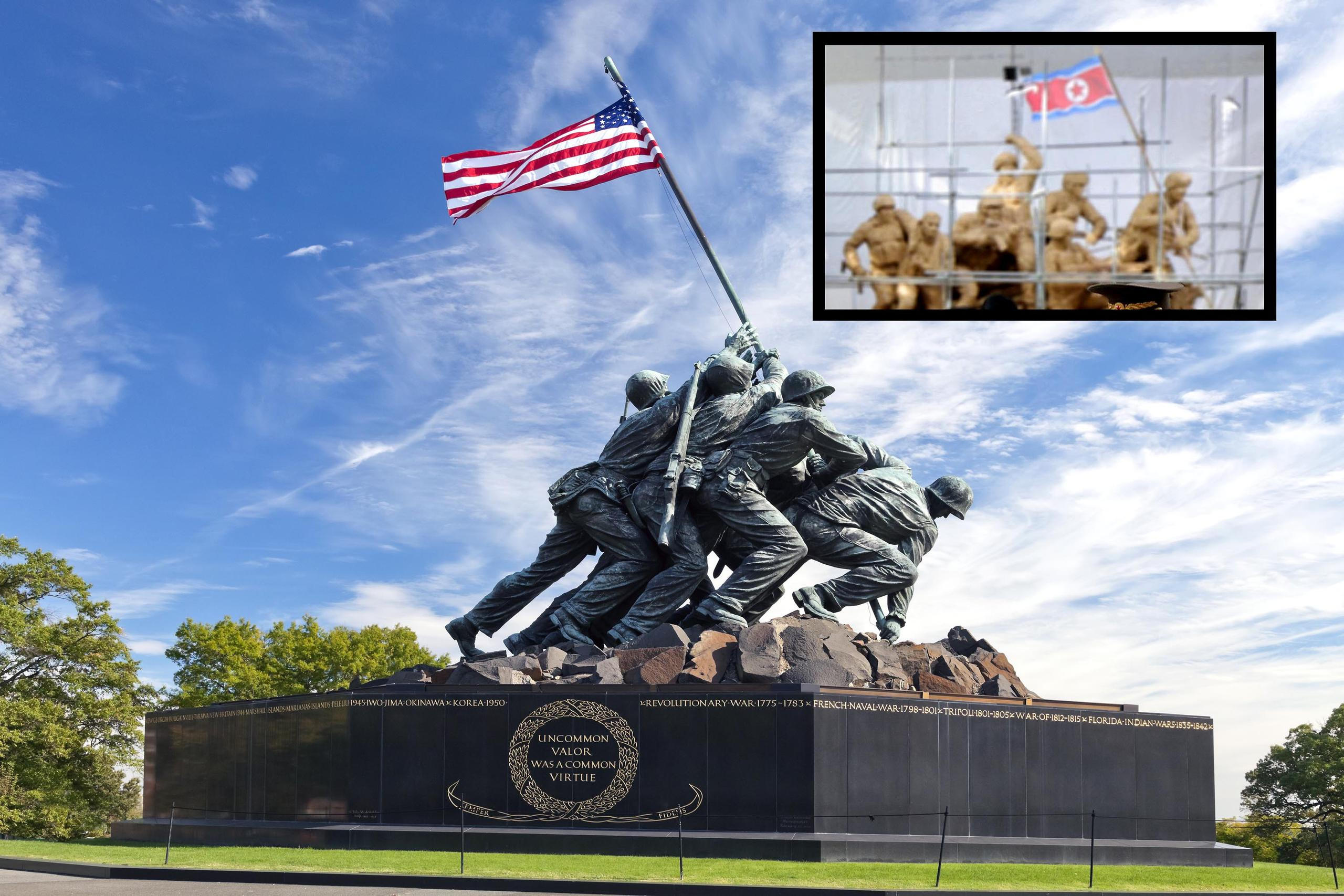 Dále zkoumal sochu severokorejských vojáků vztyčujících svou národní vlajku. Kompozice připomíná americkou sochu ve Washingtonu podle ikonické fotografie Joe Rosenthala „Raising the Flag on Iwo Jima“, zachycující americké mariňáky během druhé světové války v Tichomoří.