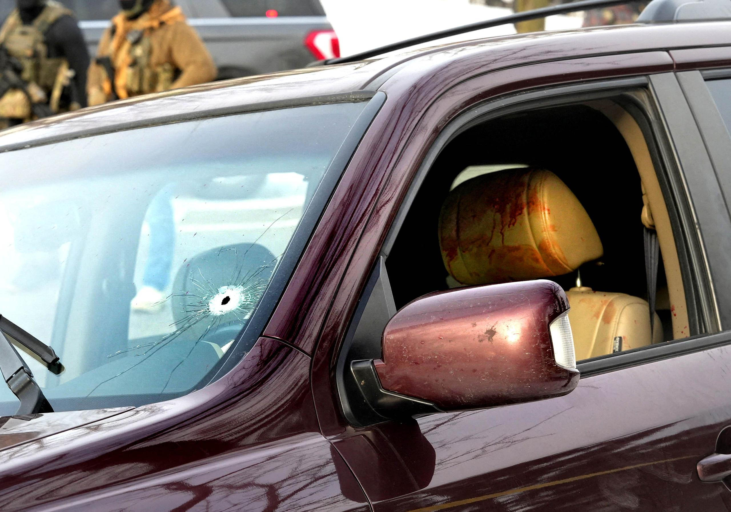 Když se jeden snaží otevřít dveře, auto couvne a pak se pomalu rozjíždí doprava ve snaze objet policisty. Jeden z agentů tasí zbraň a vypálí tři výstřely i poté, co vozidlo už míjí jeho pozici. Není jasné, zda došlo ke kontaktu mezi autem a policistou.