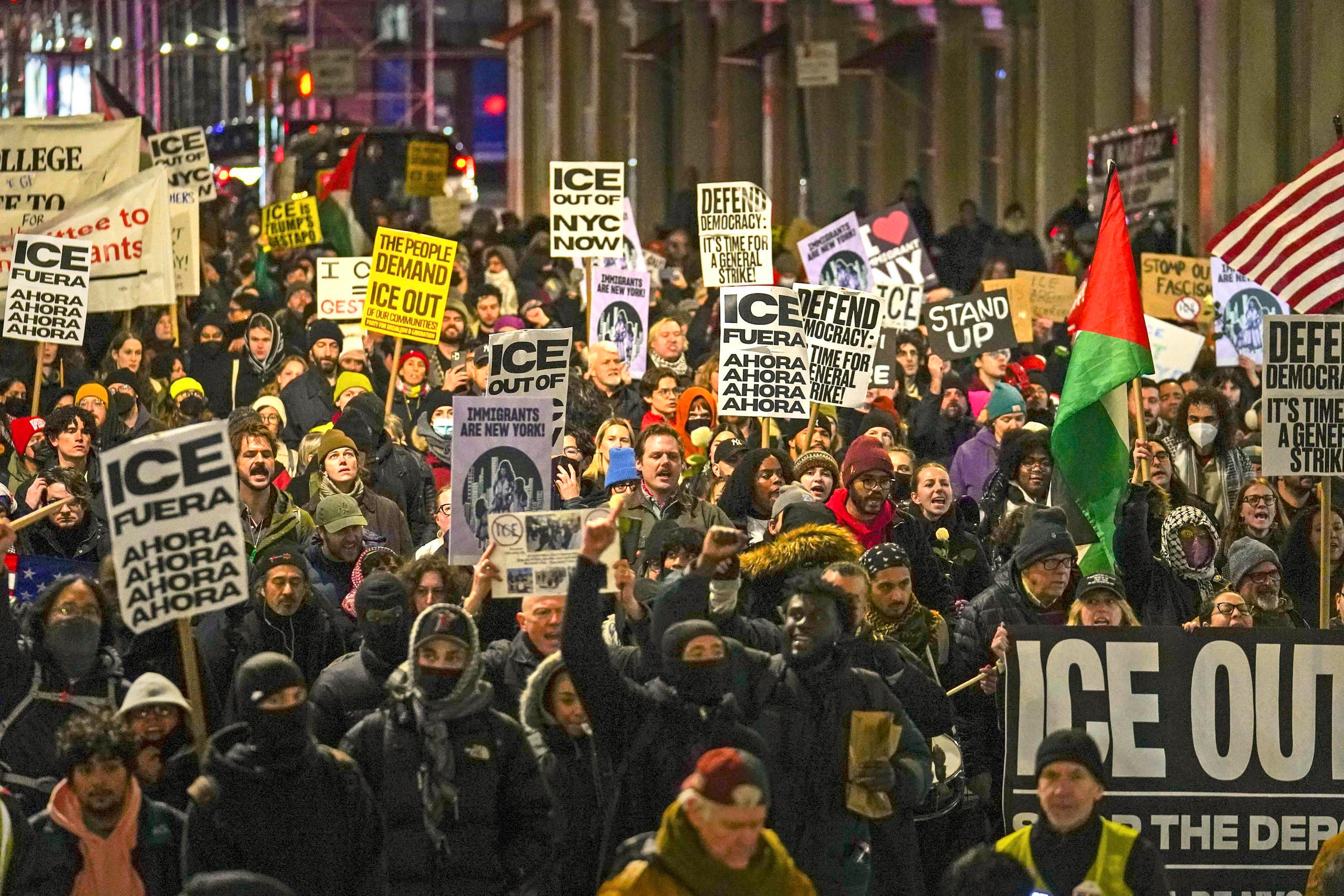 Protesty propukly i v dalších amerických městech (na snímku New York), kritici prezidenta Trumpa varují, že incident se může stát celonárodním symbolem odporu proti vysílání federálních sil do měst vedených demokraty.