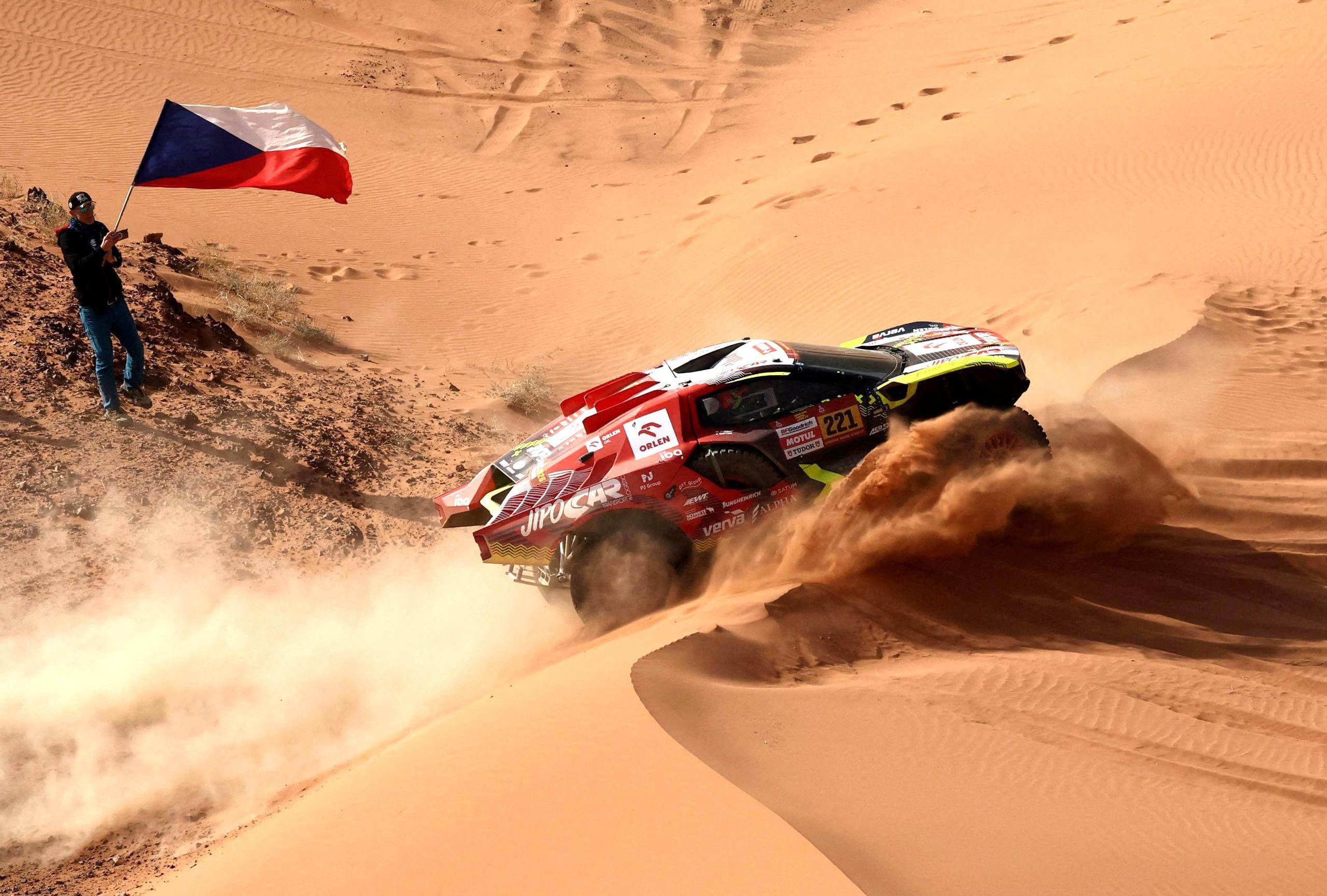 Janbú, Saúdská Arábie: Český jezdec Martin Prokop s navigátorem Viktorem Chytkou bojují v písku druhé etapy rallye Dakar.