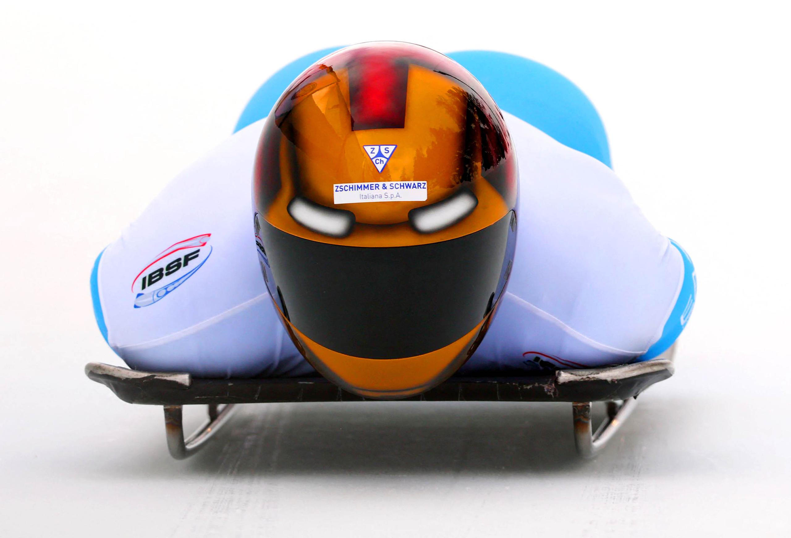 St. Moritz, Švýcarsko: Ital Amedeo Bagnis se řítí po legendární dráze Olympia Bobrun v prvním kole mužského skeletonu.