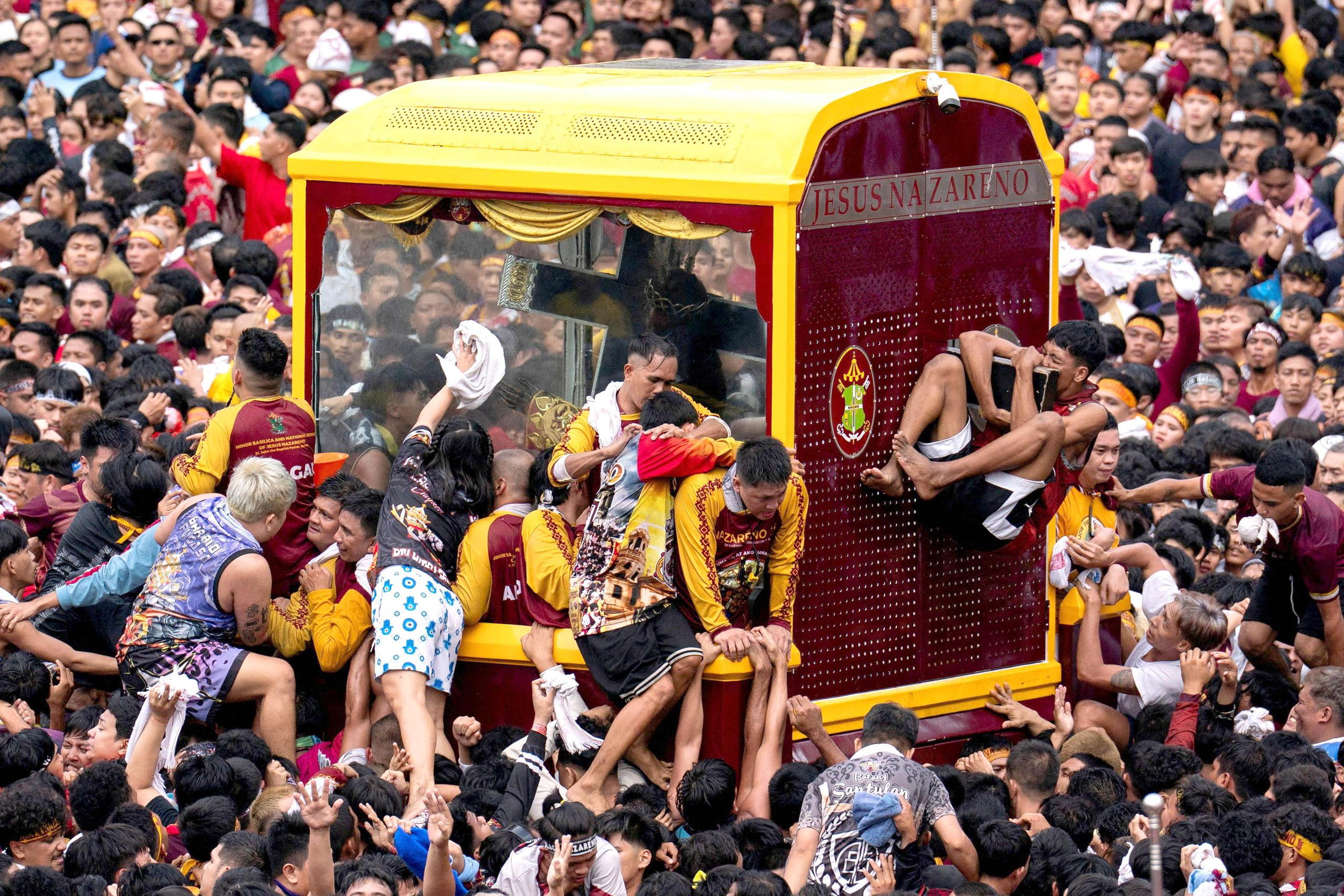 Manila, Filipíny: Moře věřících v pohybu. Tisíce lidí se snaží dotknout vozu se sochou „Černého Krista“ během největšího procesí v zemi.