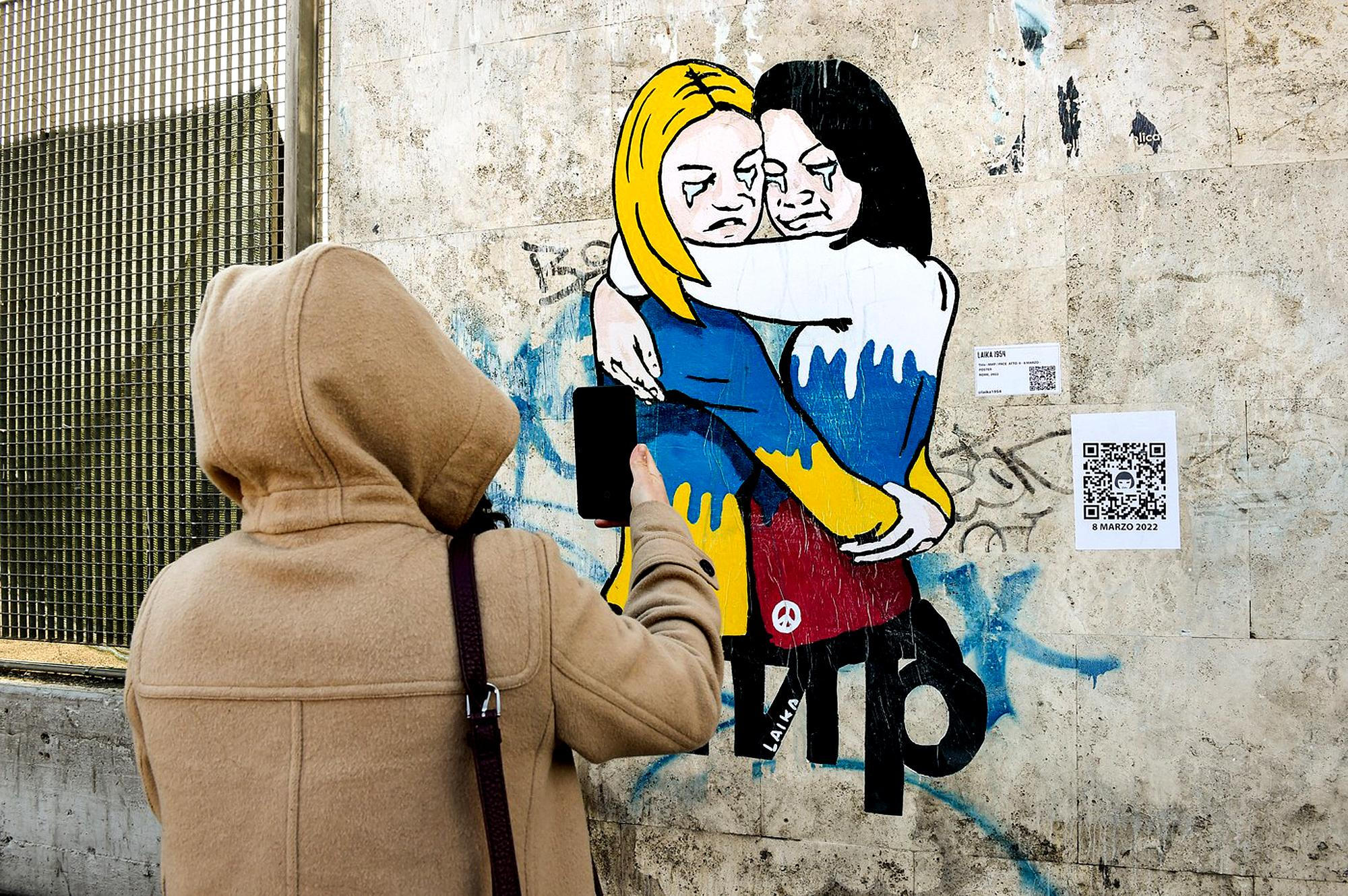 Nástěnná malba z 8. března 2022 na Piazzale Ostiense vznikla k oslavě Mezinárodního dne žen a zvláště žen ruských a ukrajinských. Dílo zobrazuje dvě objímající se a plačící ženy oblečené v barvách ukrajinské a ruské vlajky.