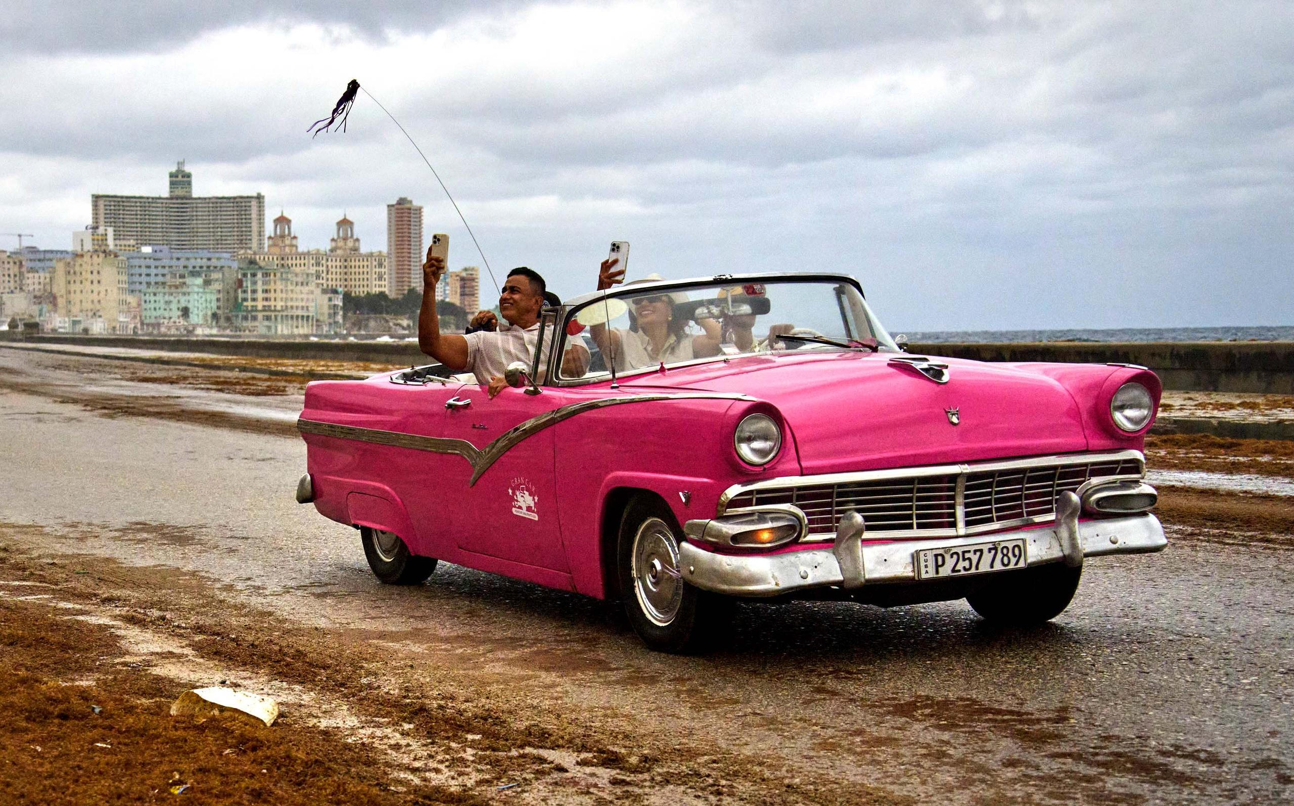 Vláda amerického prezidenta Donalda Trumpa zvažuje úplnou námořní blokádu Kuby, aby ostrovní zemi zcela odřízla od přísunu ropy a vynutila si změnu tamního režimu. Na snímku jsou turisté v autě z půjčovny.