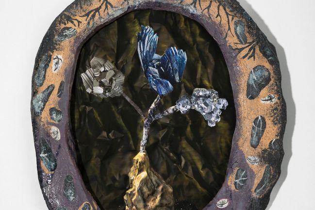 Spojení autorského tisku Michaely Karásek Čejkové a keramického rámu Luisy Bělohlávkové. Jediný originál. Pugét pro geologa.