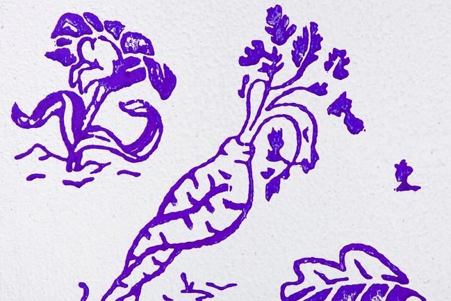 Ukázka klasického malířského válečku s designem ilustrátora s kanadskými kořeny, Dirka Wrighta. Dirk Wright se inspiroval zahradou a jejími často bizarními plody. Vychází z motivu bájné mandragory.