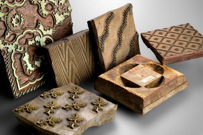 Tiskařské formy s různorodými motivy, které se během historie modrotisku proměňovaly.