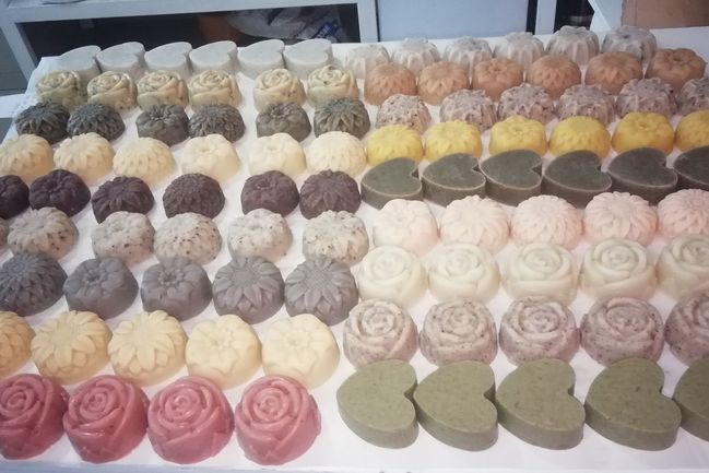 Gomes Adolfo se se svým manželem stala pro místní inspirací. Za poslední čtyři roky v jejich okolí vzniklo několik malých firem domácí výroby, jejichž majitelé se řemeslu učili právě u nich. Na fotografii je limitovaná kolekce mýdel z ovoce, zeleniny a bylin.