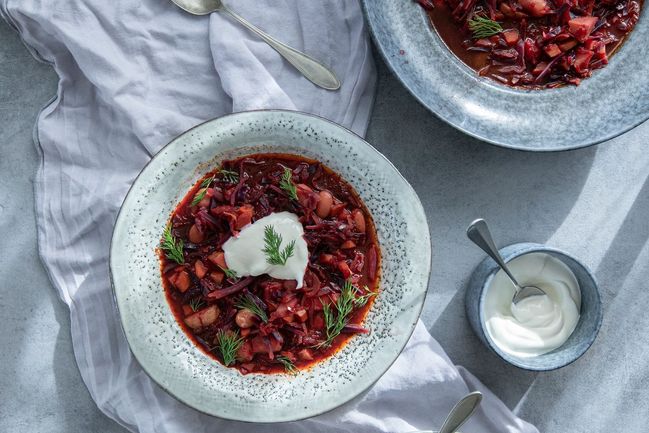 Tip: Chcete-li boršč v masové verzi, použijte do základu hovězí vývar a do polévky natrhejte libové hovězí maso.