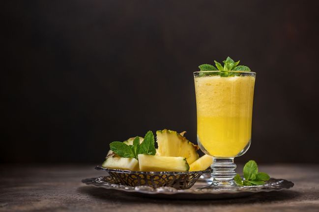 Ananas vložíme do mixéru a rozšleháme se lžící medu do pěny. Vzniklou šťávu vlijeme do sklenice.