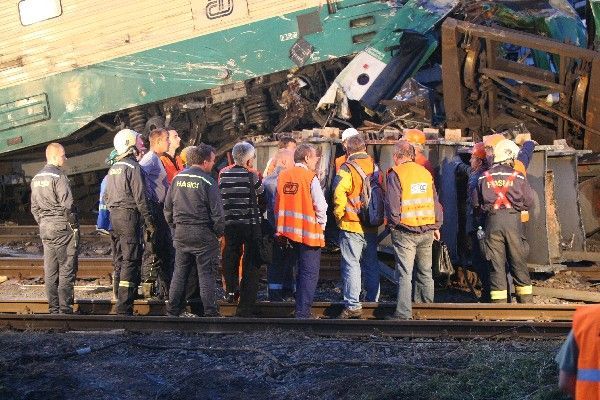 Úklid po neštěstí: Jeřáby a tank odtahují trosky smrti