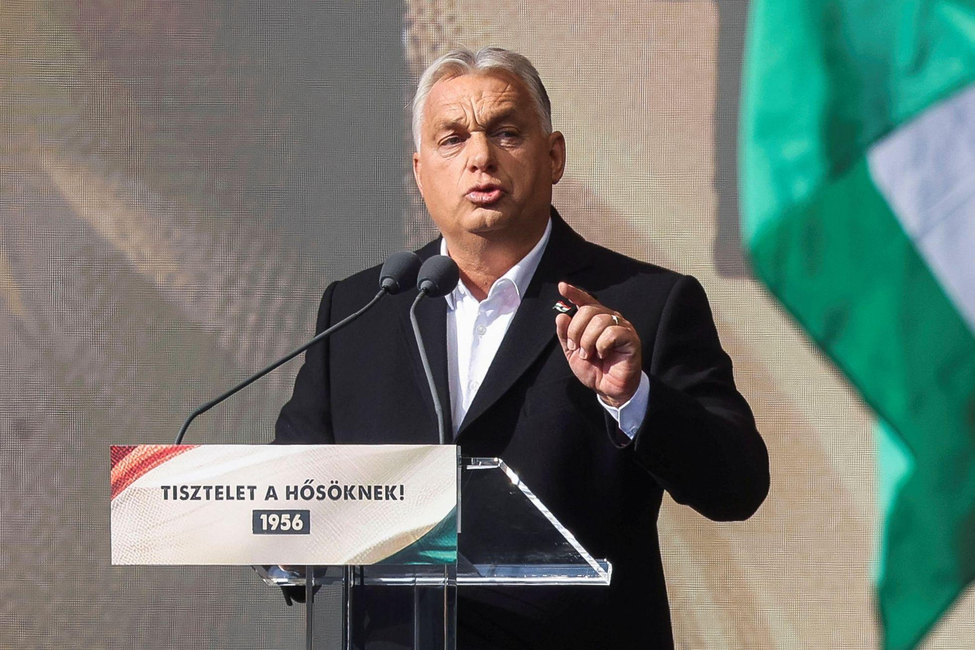Maďarský premiér Viktor Orbán v Budapešti během projevu k 68. výročí maďarského povstání, 23. října 2024.