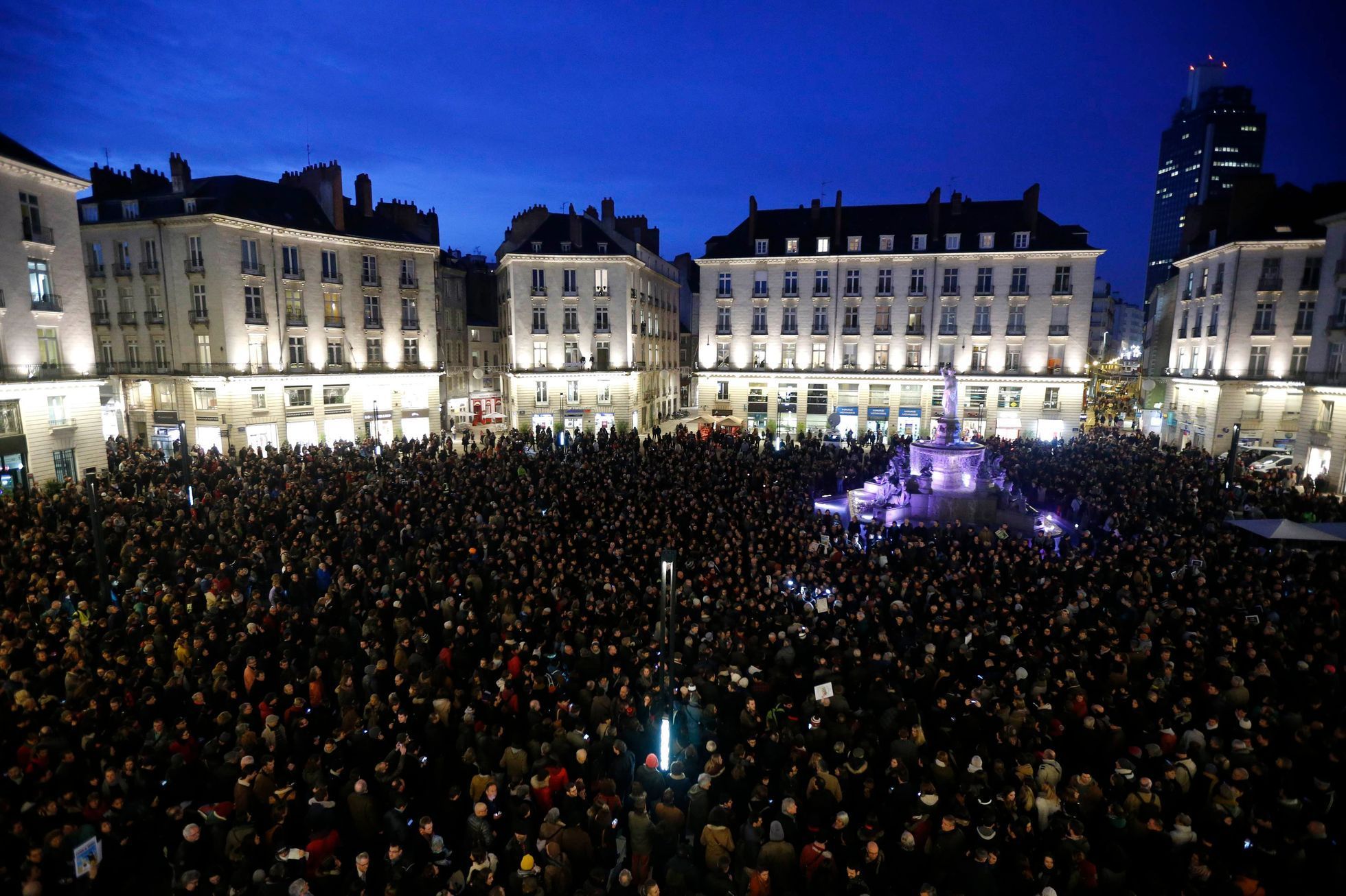 Početné pietní shromáždění na náměstí v Nantes ve Francii.