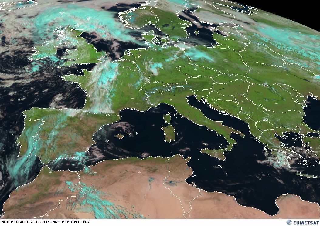 Bouře nad Německem z vesmíru. 10. června, 9 hodin ráno.